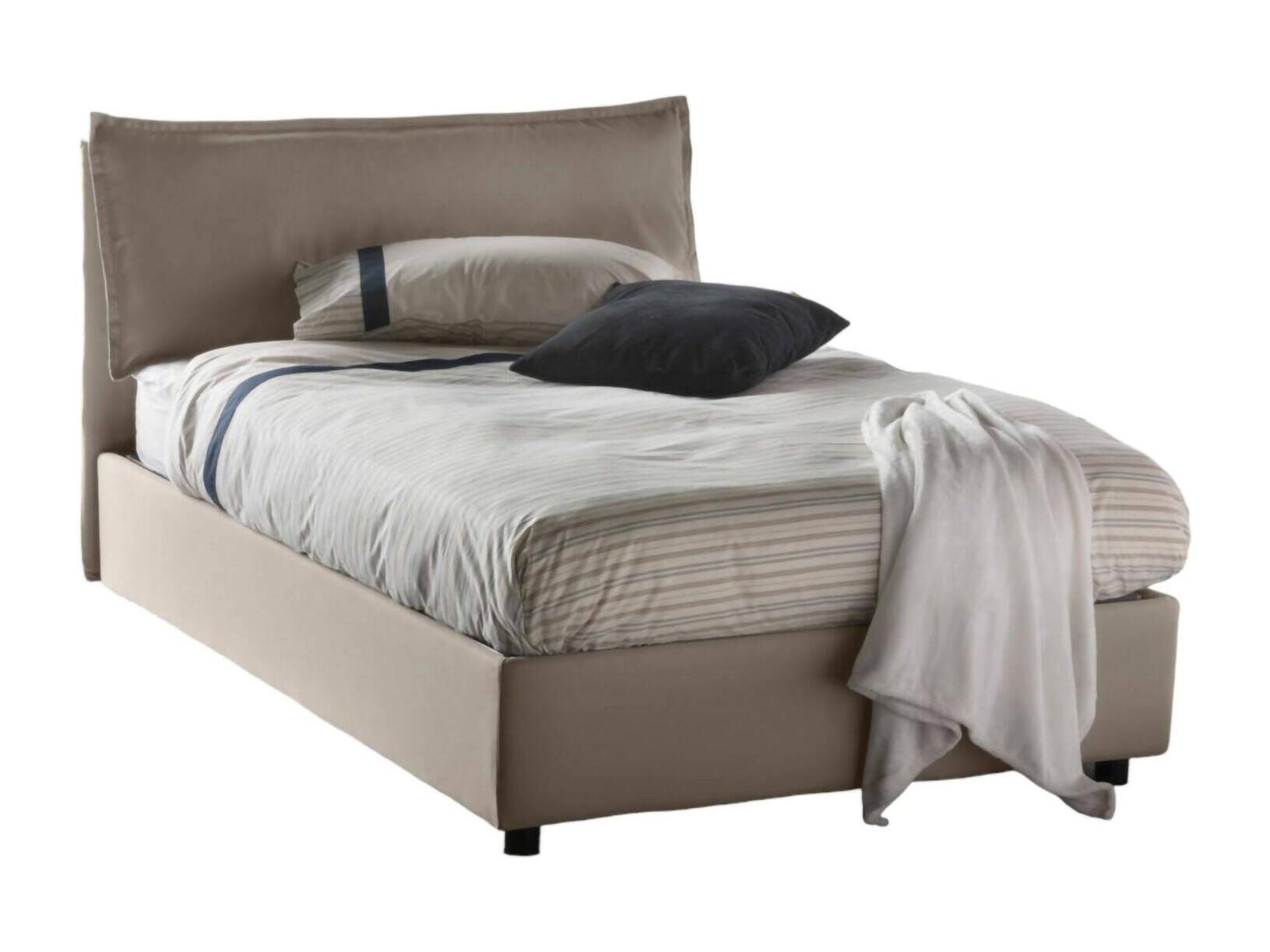CAMA DE PLAZA Y MEDIA - Cama contenedor con revestimiento de tela, 100% Made in Italy, Apertura frontal, con colchón Cm 120x190 incluido, Tórtola.