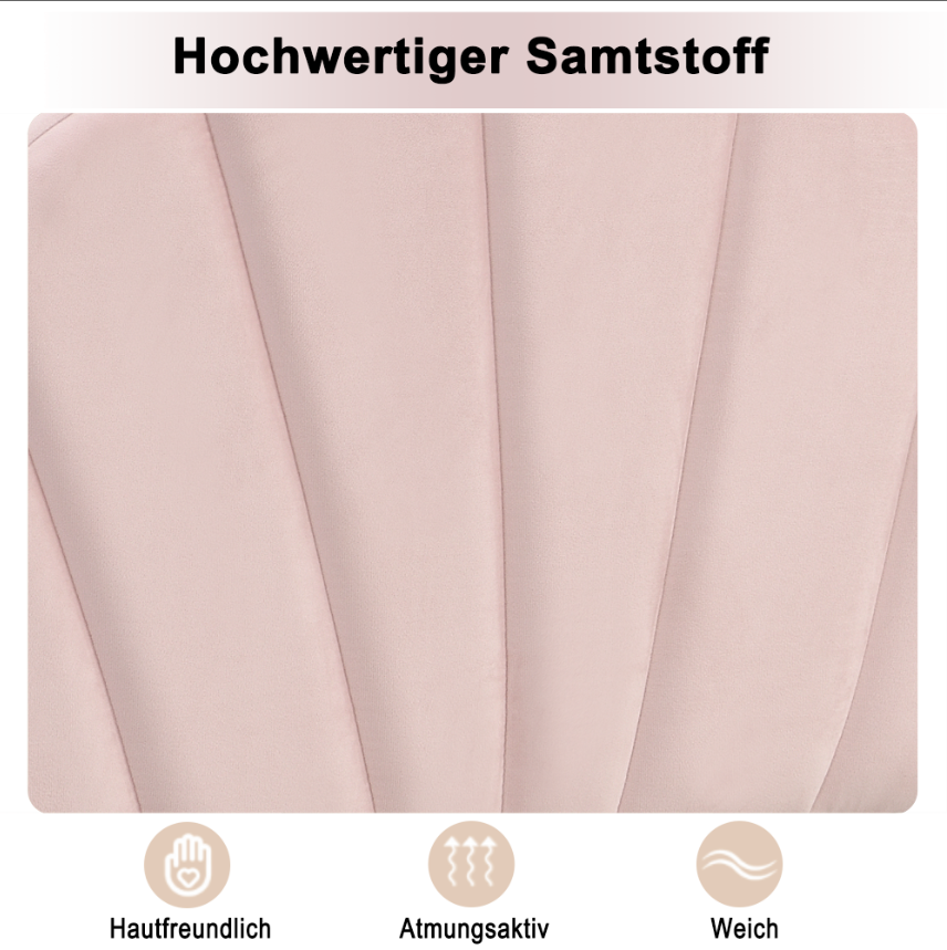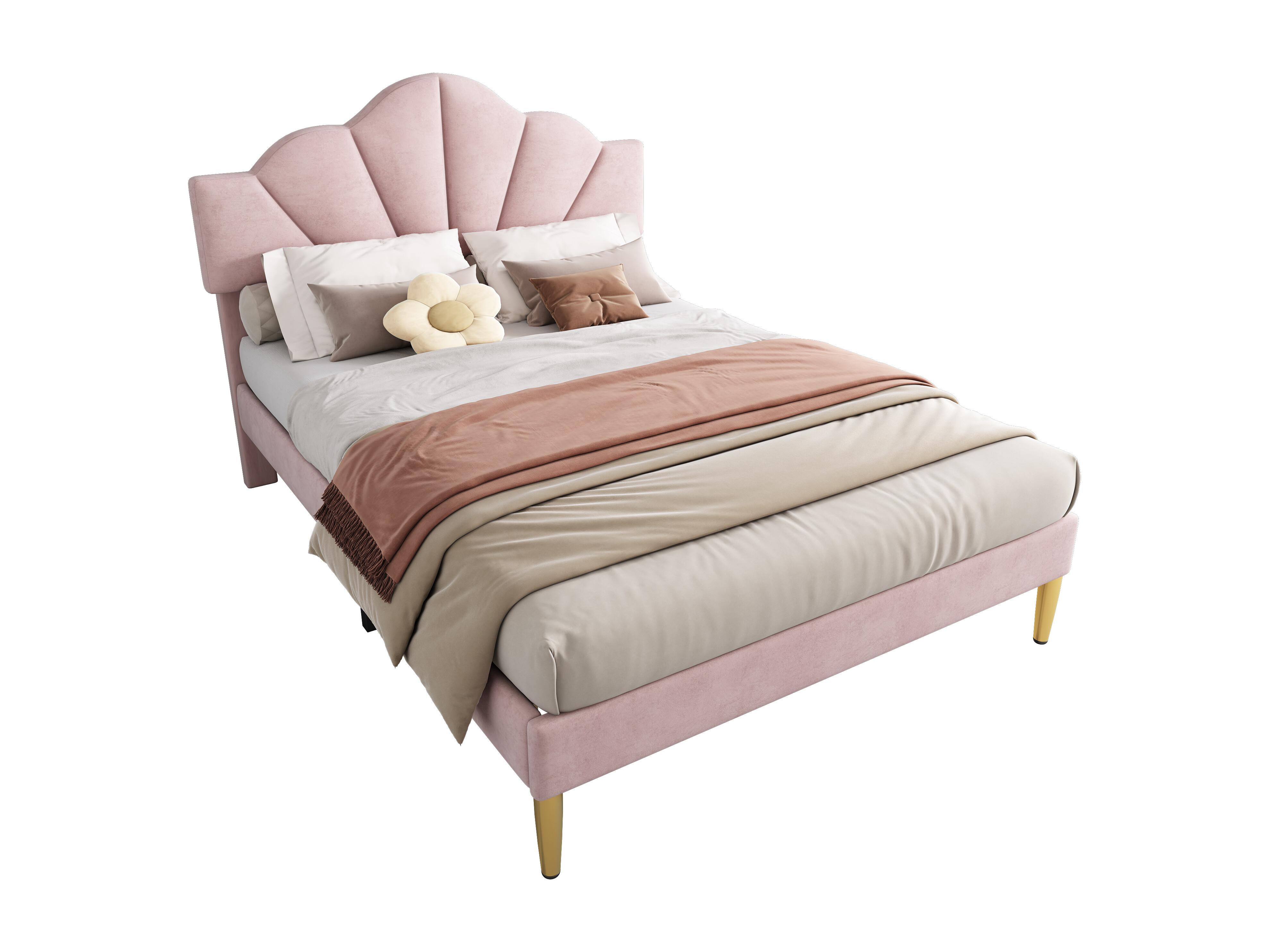 Cama de terciopelo 140x200 cm cabecero de concha rosa con somier de láminas y patas doradas