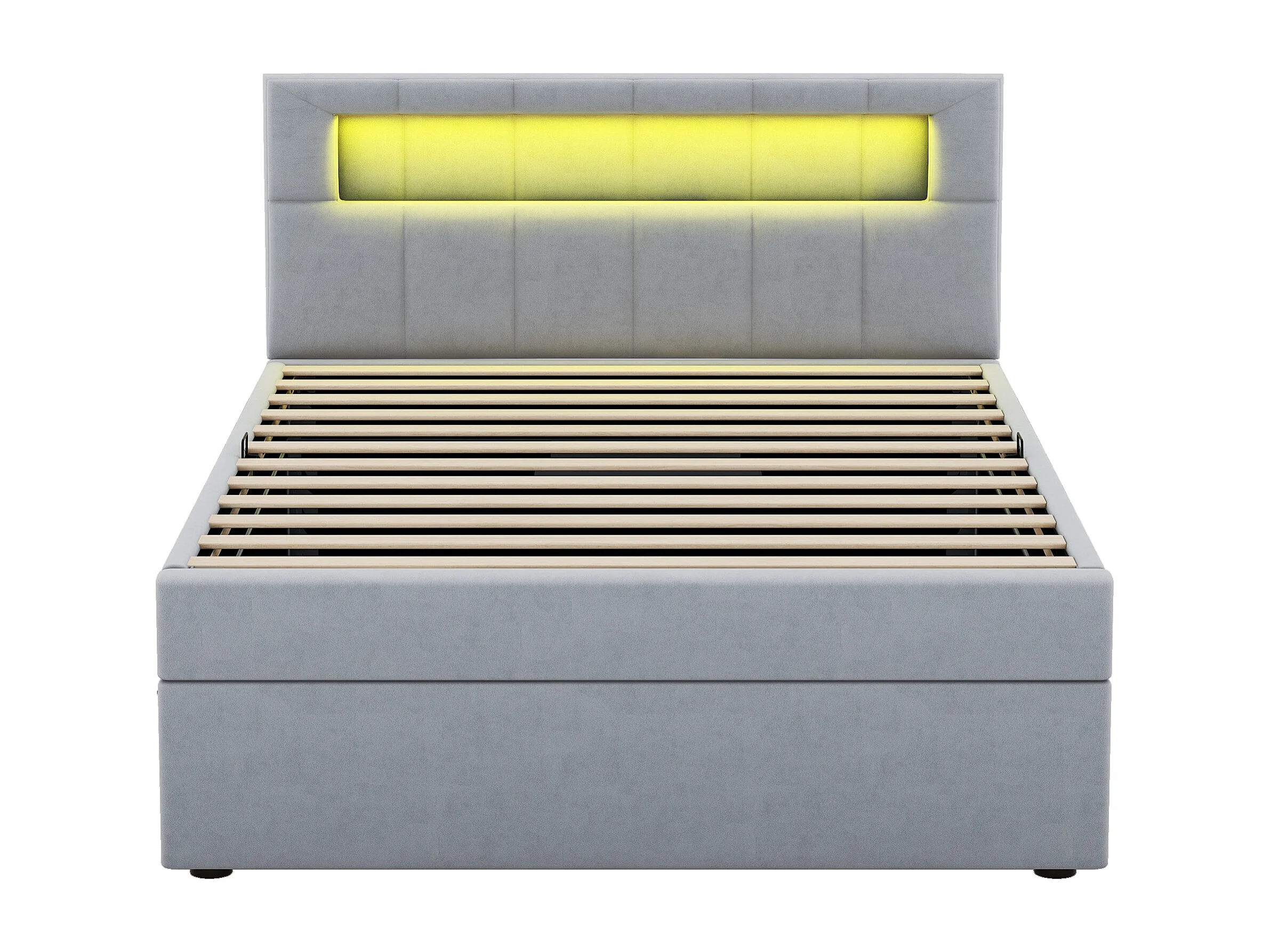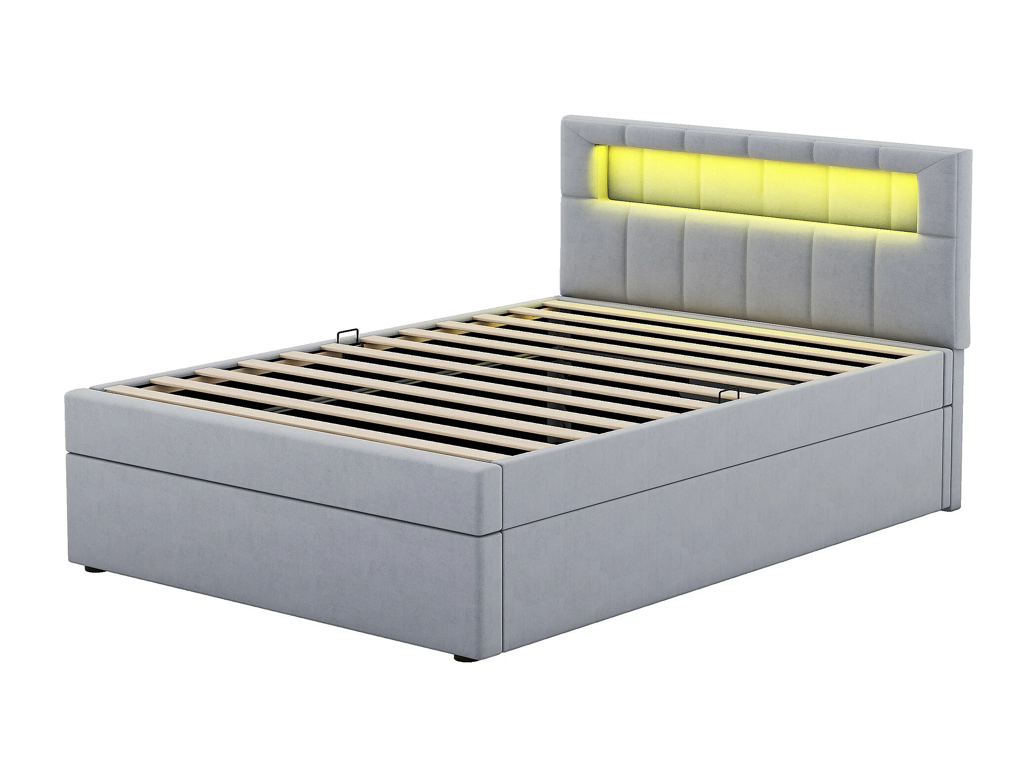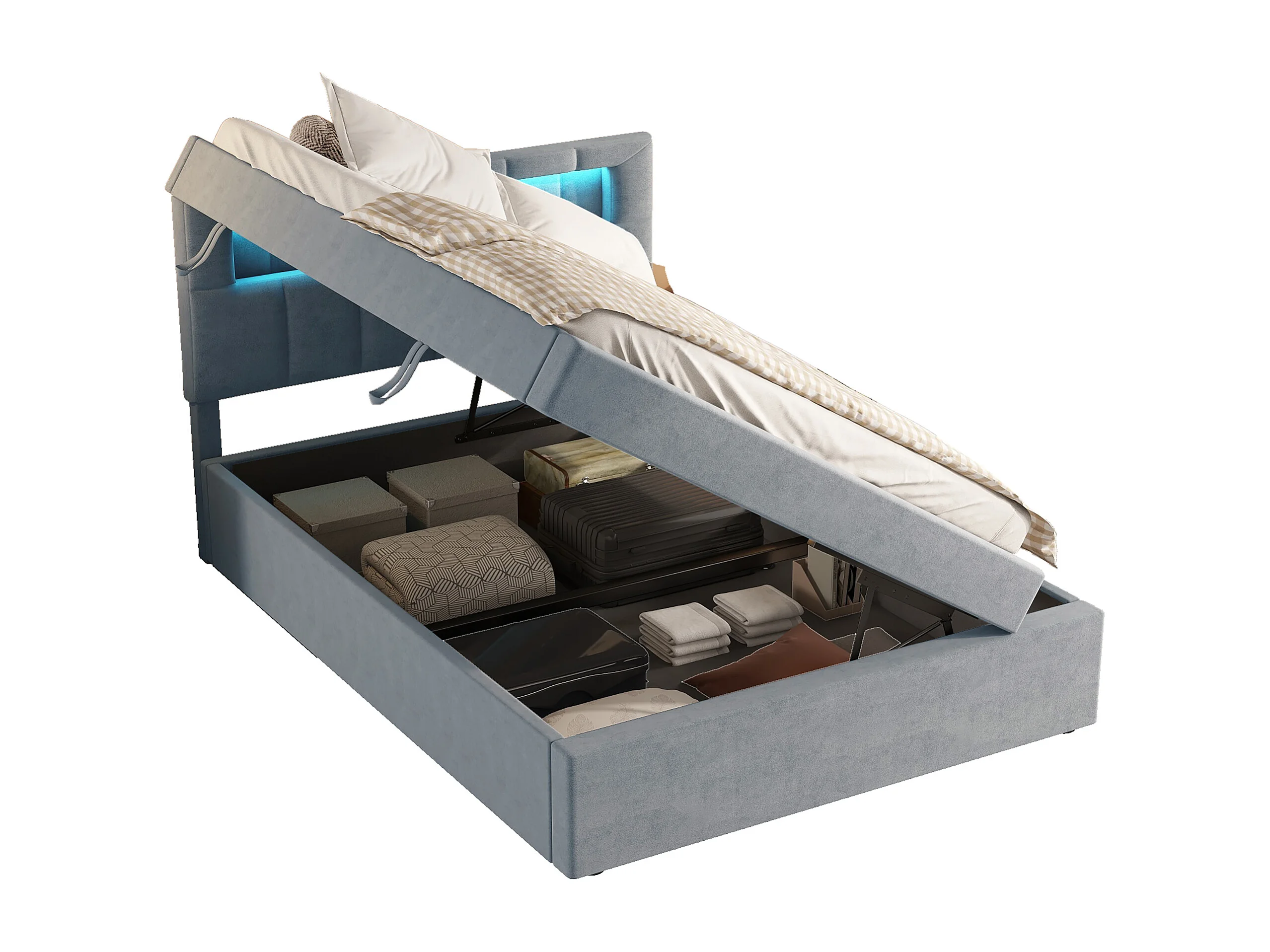 Cama de terciopelo gris de 90x200 cm con LED, amplio espacio de almacenaje, cabecero ajustable