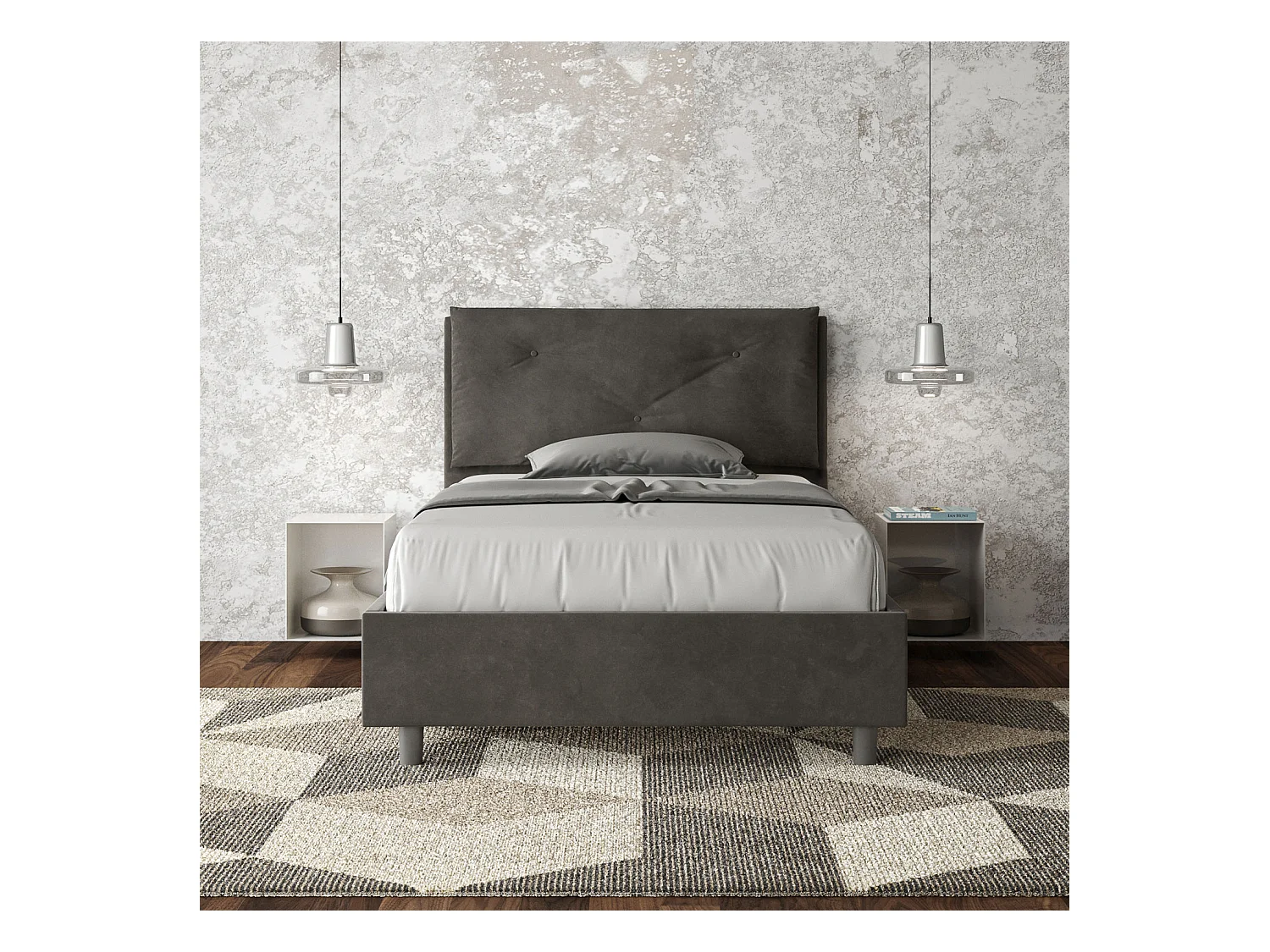 Cama de una plaza y medio sin somier acolchada 120x190 microfibra gris Appia Large