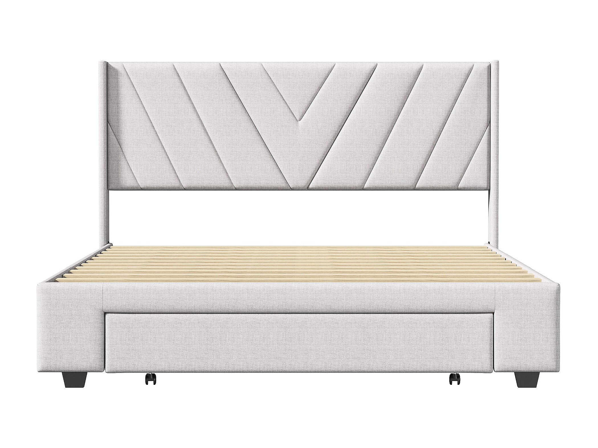 Cama doble 160x200 cm, con base, cama doble con almacenaje, cama doble, beige