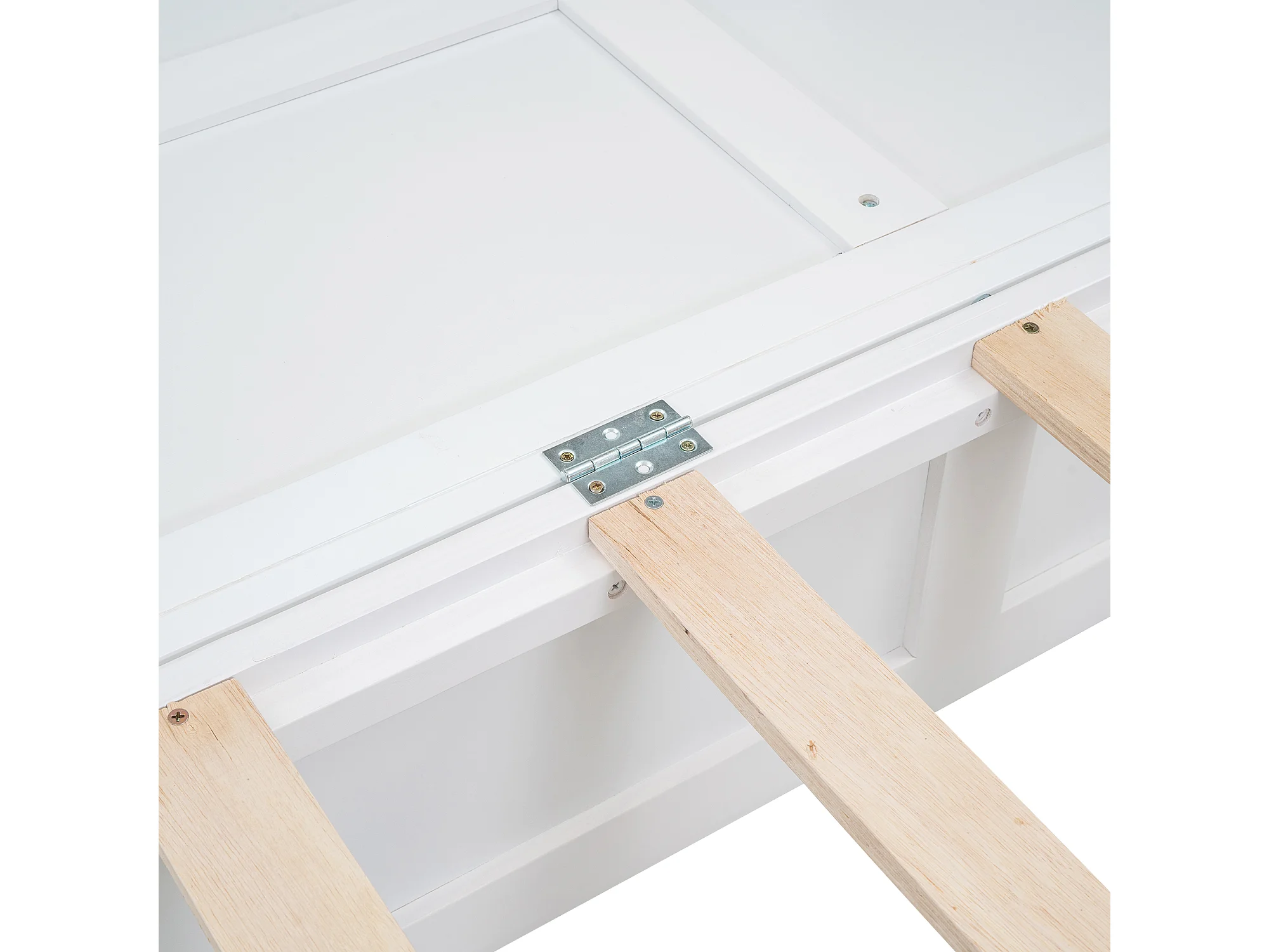 Cama individual 140x200 cm - Estructura de cama con cajones y somier - almacenaje abierto - blanco