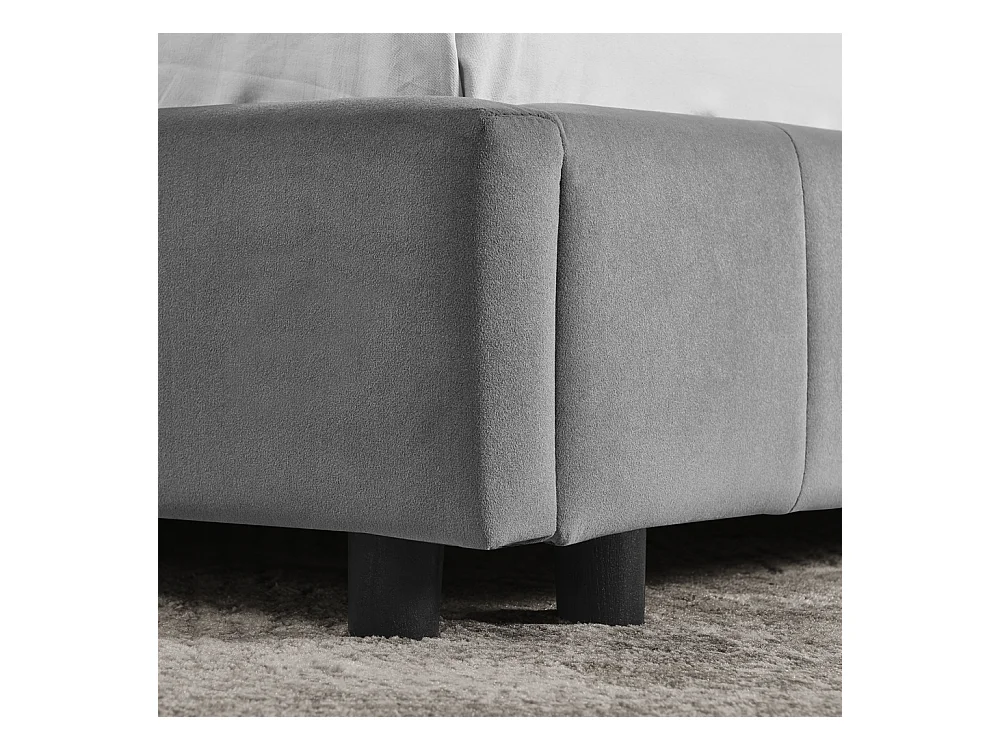Cama adulto 160 x 200 cm - Cama doble con patas de madera - terciopelo gris - colchón no incluido