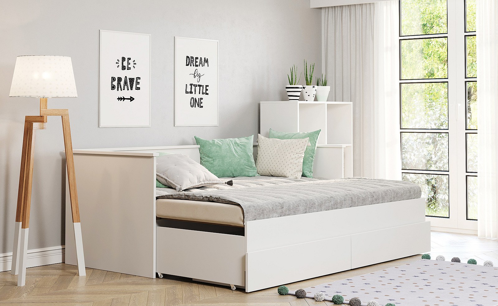 Cama Doble Blanca 200x160 cm – Incluye Estructura, Base y 2 Colchones, Diseño Moderno y Robusto para Dormitorio Matrimonial