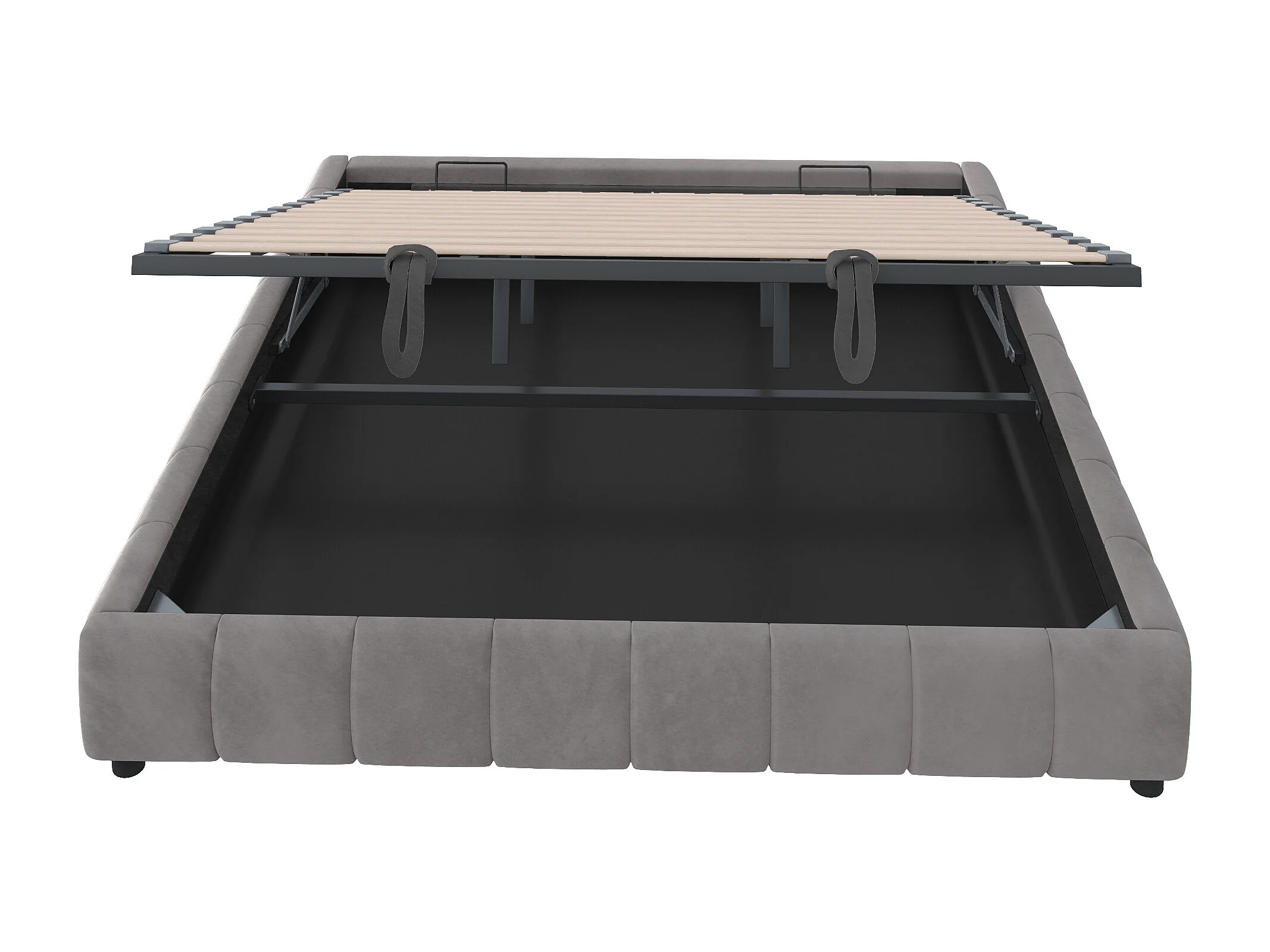 Cama doble canapé para adultos 180x200cm en franela con iluminación LED - Sin cabecero - Gris