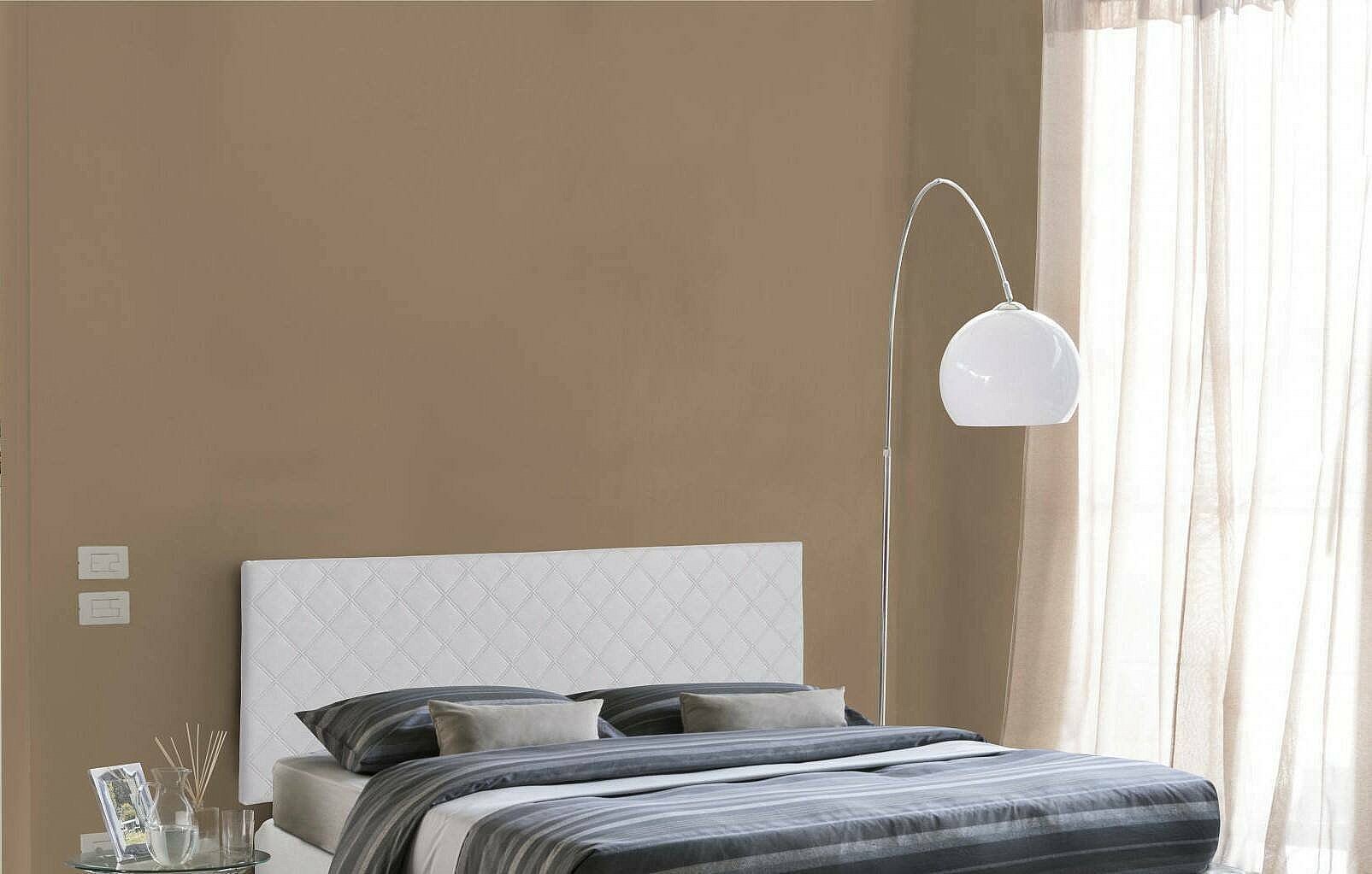 Cama doble Cleopatra, cabecero suspendido en ecopiel, 100% Made in Italy, apto para cama doble, 170x60 cm, Blanco