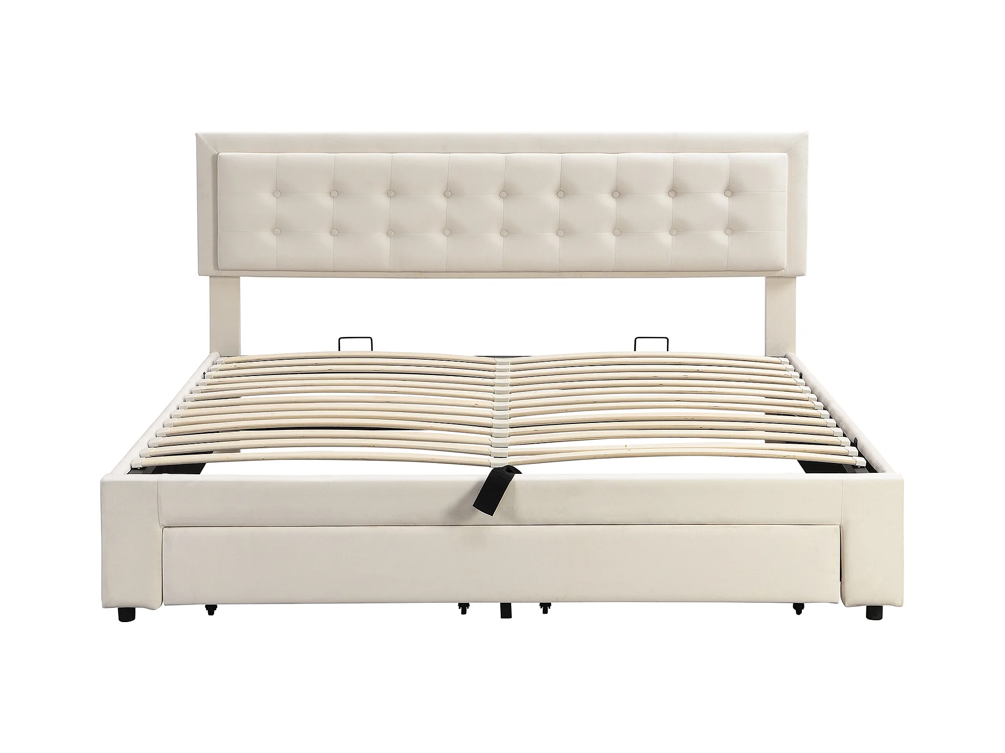 Cama con almacenaje 160x200 cm - Cama tapizada con cajones y cabecero regulable - terciopelo beige - sin colchón