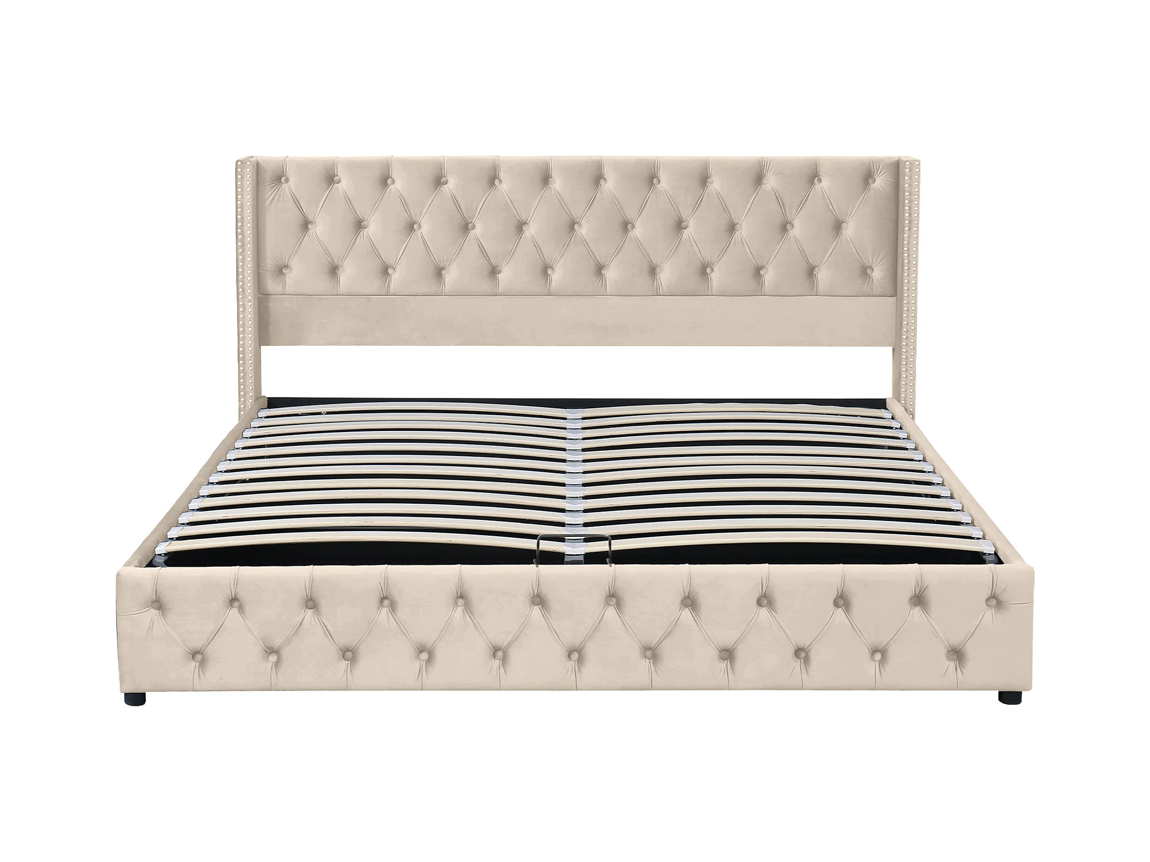 Cama contenedor de terciopelo con somier de láminas 180x200 cm - Beige