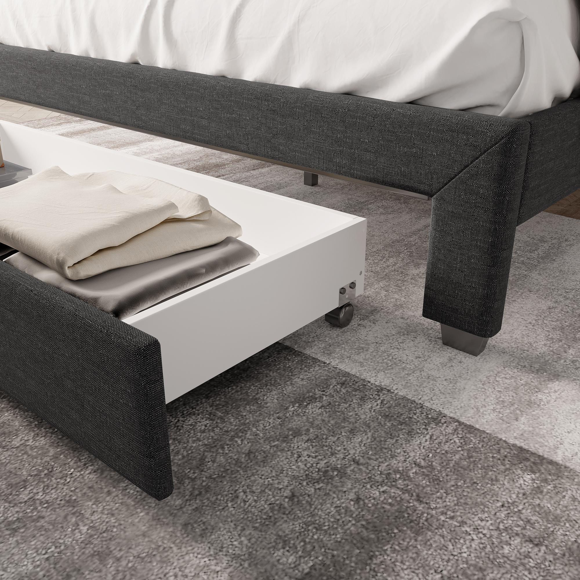 Cama tapizada de madera 140x200 cm con iluminación LED y 4 cajones - Gris (sin colchón)