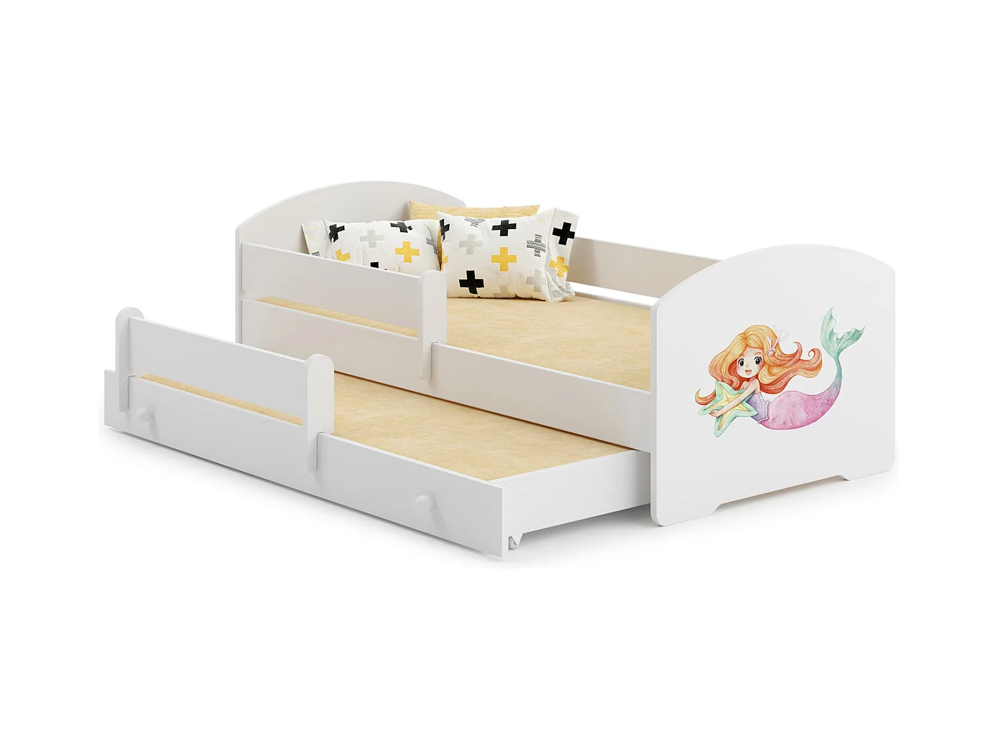 Cama Doble Infantil Blanca Dibujo Sirena Con Barandillas 160x80 cm con Cama Inferior 145x80 cm – Incluye 2 Colchones y Estructuras
