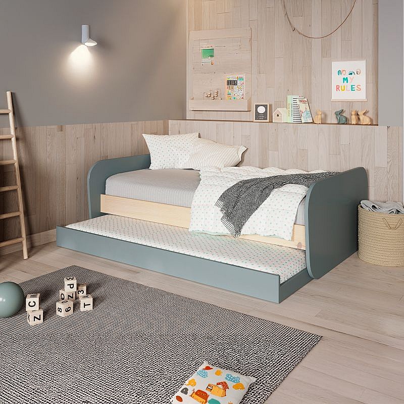 Cama doble juvenil Misty Breeze Verde Salvia - Oak Soft