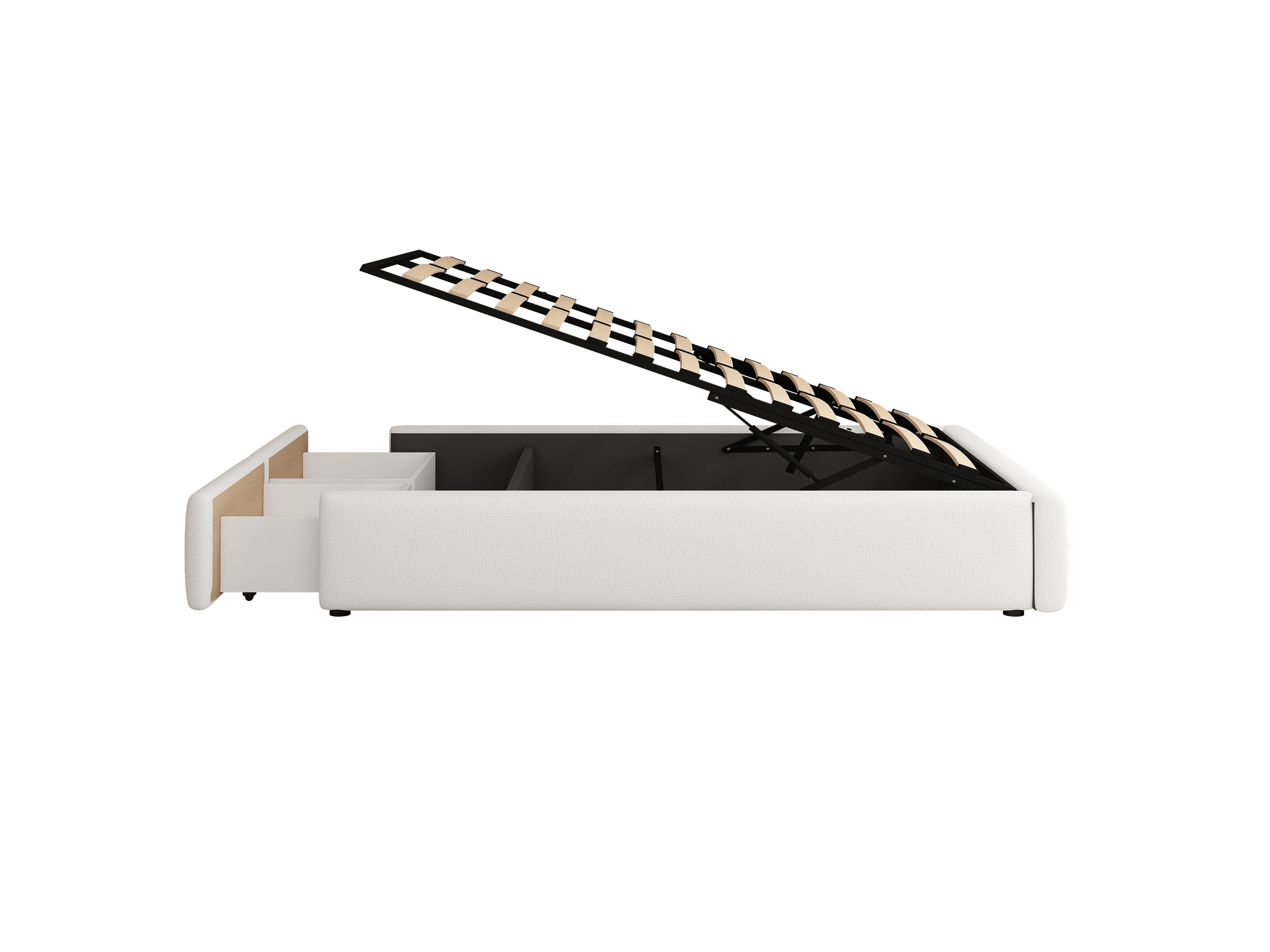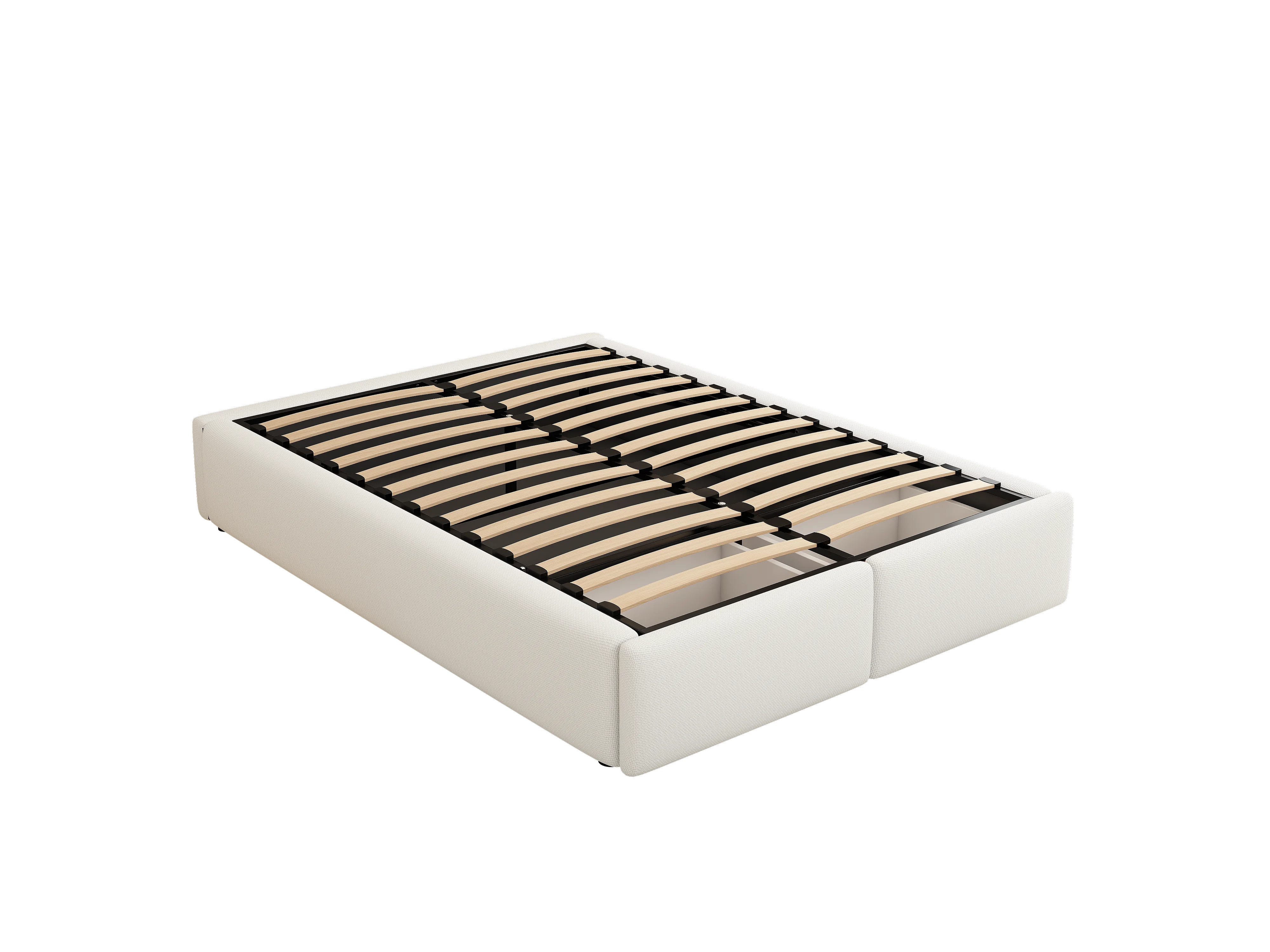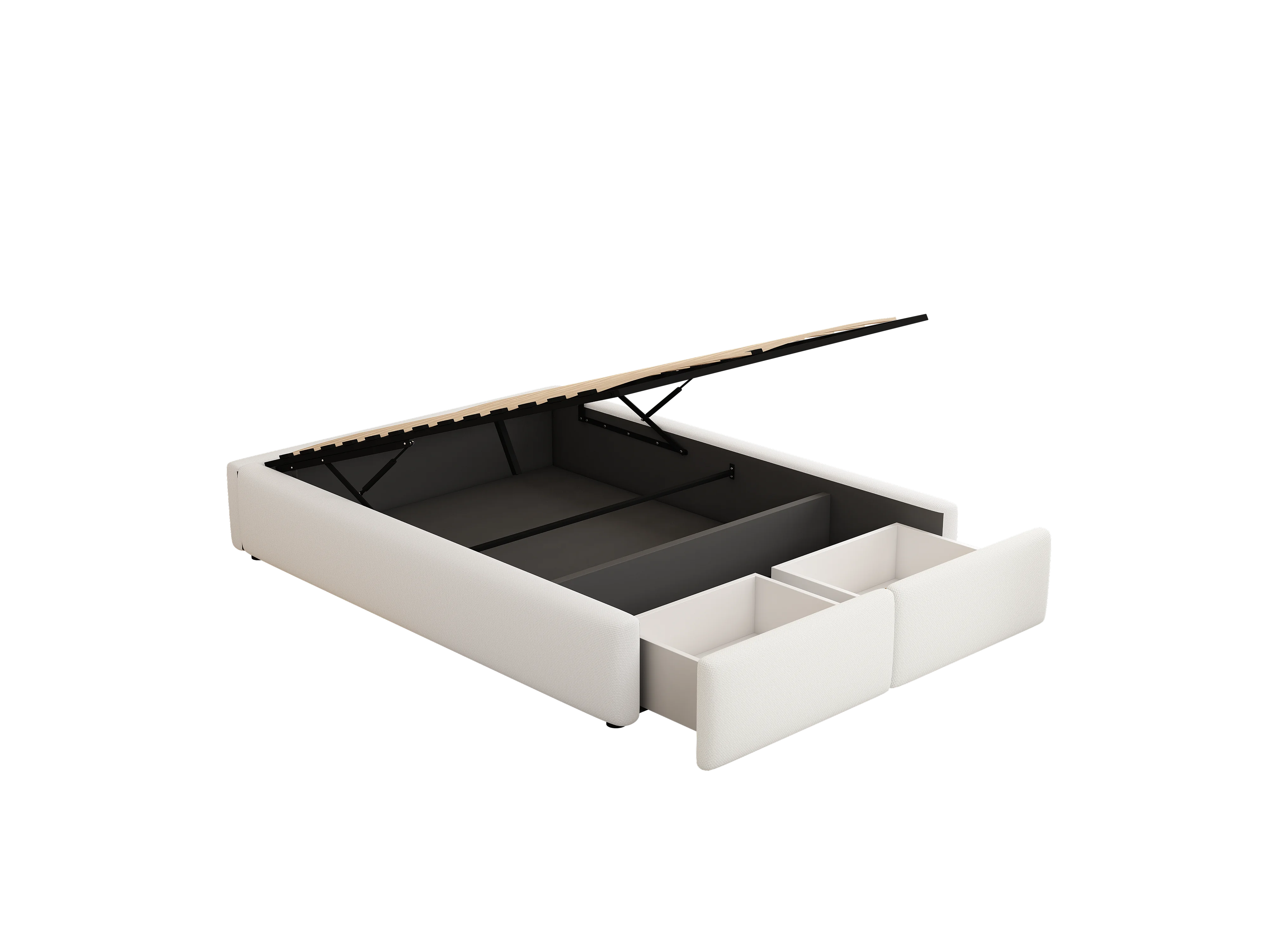 Cama doble tapizada 140x200cm sin cabecero - con 2 cajones - Tela de Lino - Blanco