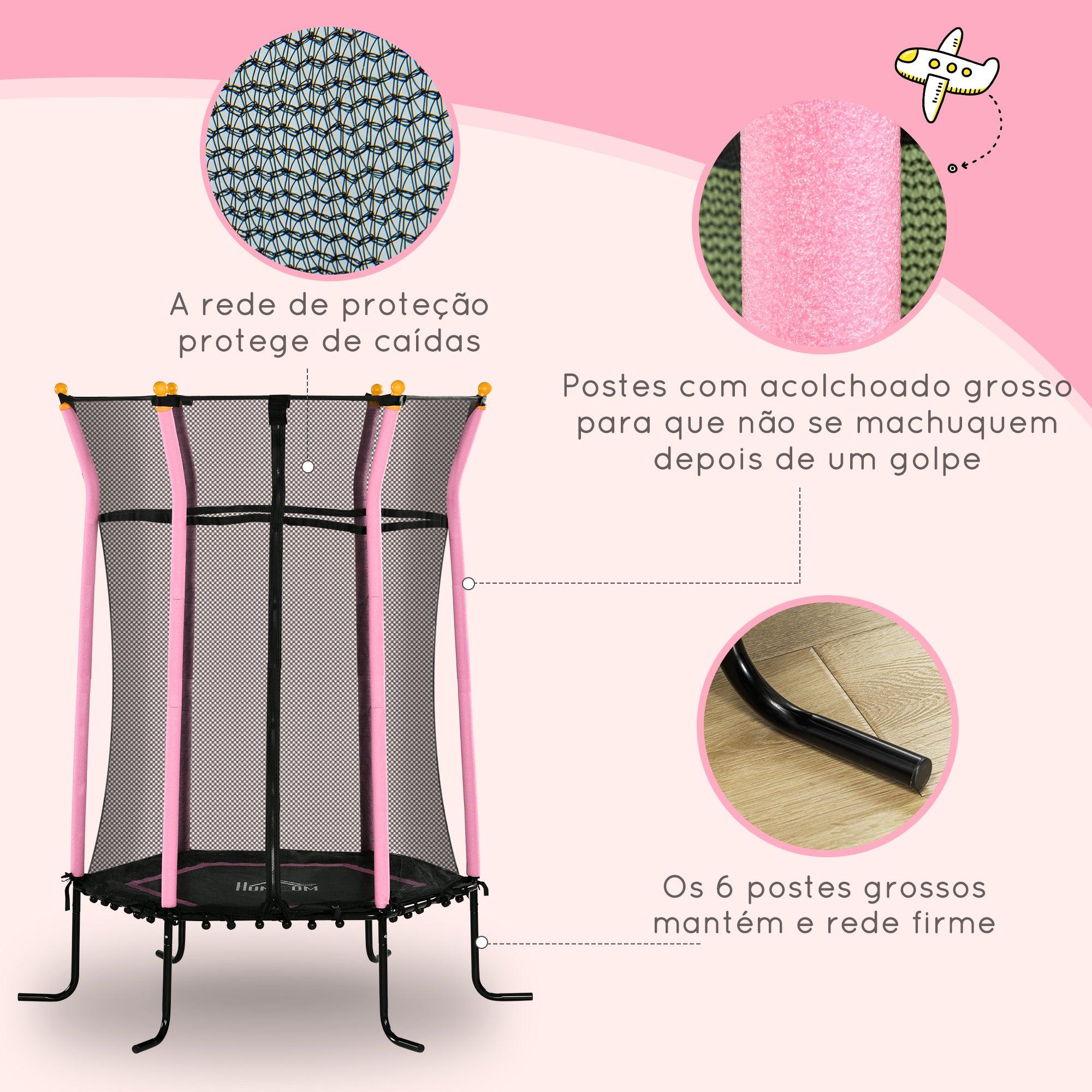 Haz que tus hijos disfruten saltando con total seguridad con esta cama elástica infantil de Homcom. Diseñada para mayores de 3 años, combina diversión y protección en un mismo producto. Su tapete de polipropileno es resistente y duradero, mientras que la estructura de acero con revestimiento en polvo garantiza estabilidad y uso prolongado.