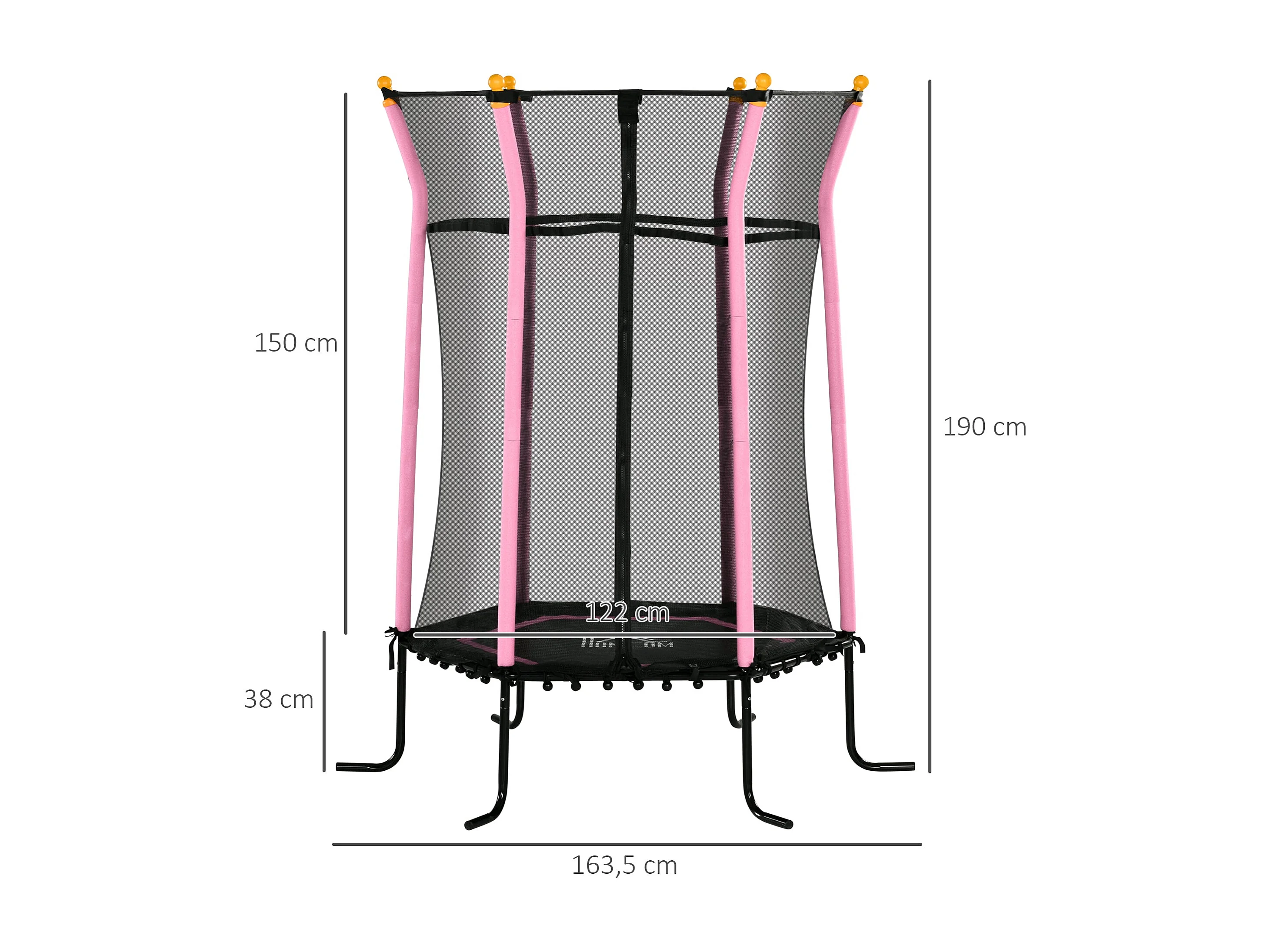 Cama elástica Garden Homcom red de seguridad + postes acolchados rosa Ø163,5x190 cm