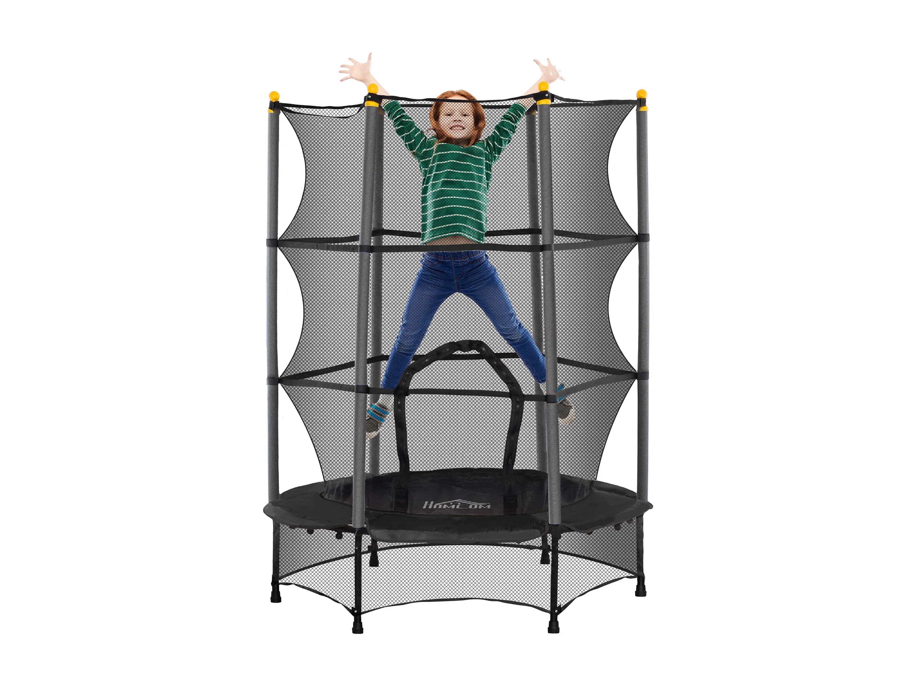 Trampolín infantil con red de seguridad, de acero y plástico, color negro (140x140x190cm)