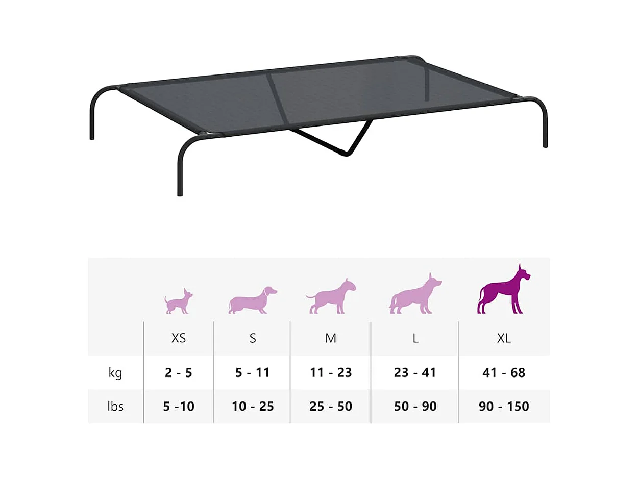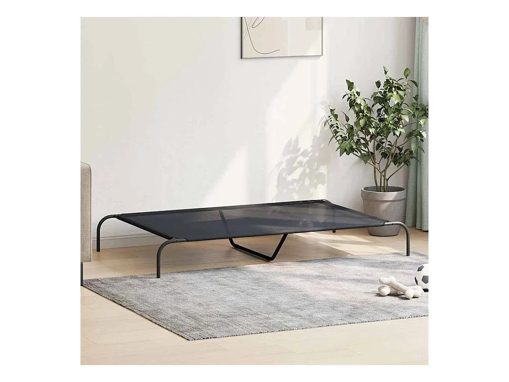 Cama elevada para perros negra 150x90x20 cm textilene y acero