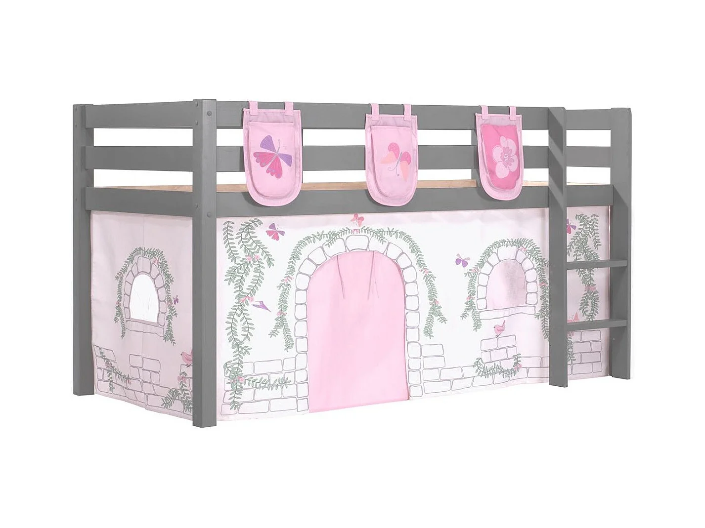 Cama altillo de 90x200 cm con tienda túnel y 3 bolsillos princesa pino macizo gris Pino
