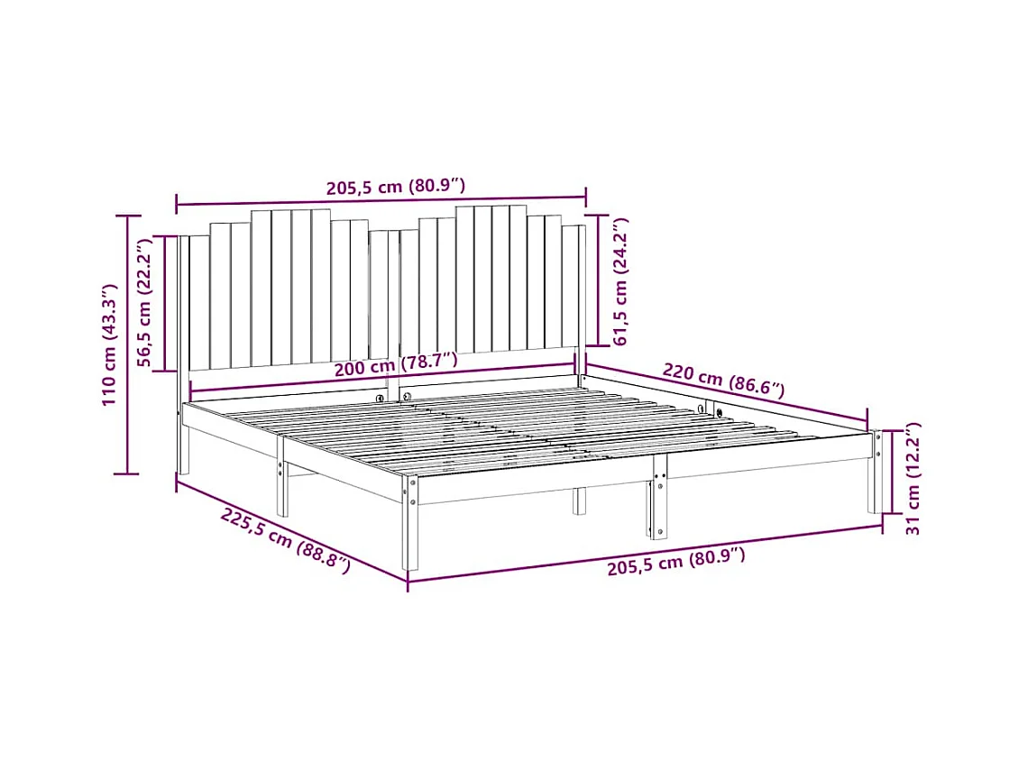 Cama extralarga sin colchón madera maciza 200x220 cm