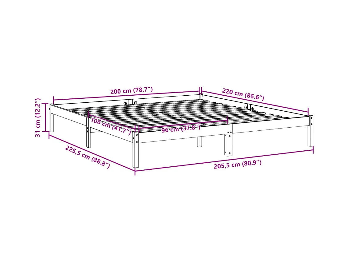 Cama extralarga sin colchón madera maciza pino blanca 200x220cm