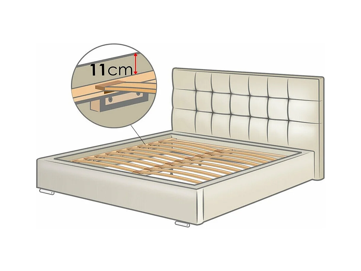 Cama Florence 100, Doble, Blanco, 160x200, Cuero ecológico, Somieres, 178x216x105cm
