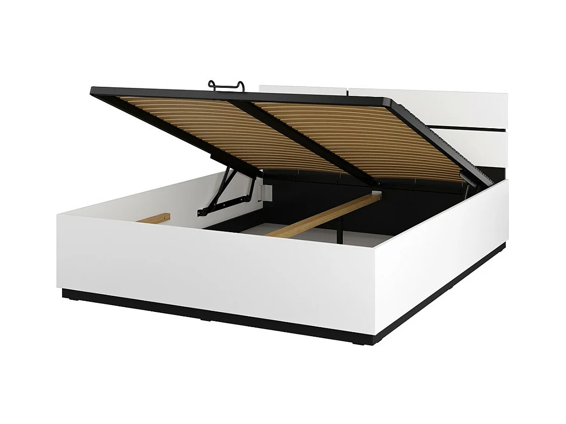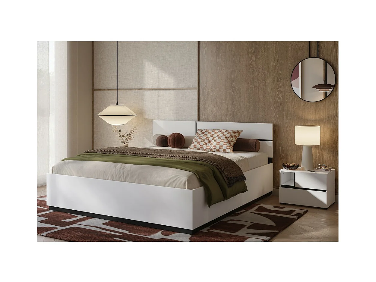 Cama HAVANA 160x200 cm blanca y negra con arcón – Diseño moderno y almacenamiento integrado