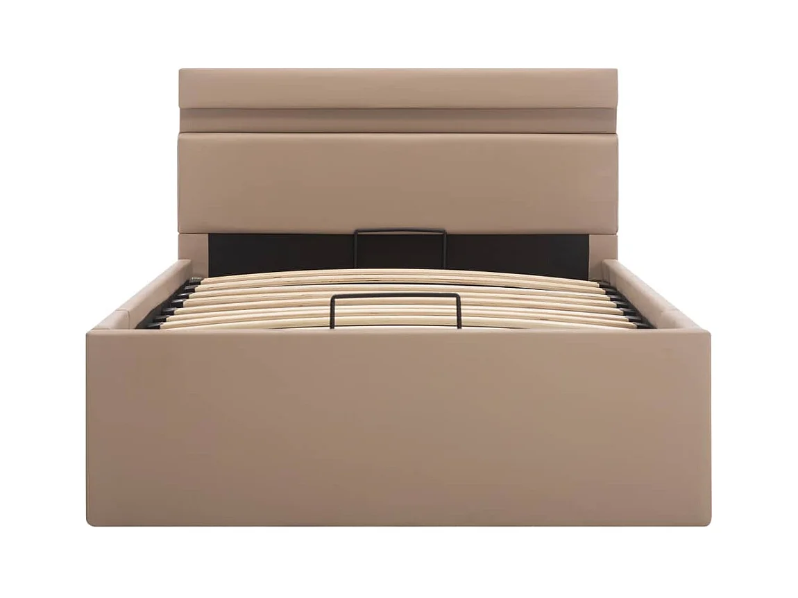 Cama hidráulica - 100x200 cm LED cuero sintético capuchino ES496511