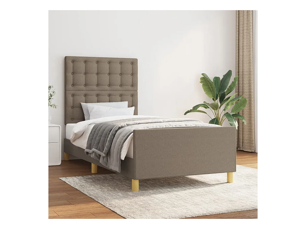 Cama individual- 100x200 cm con cabecero de tela gris taupe ES633484