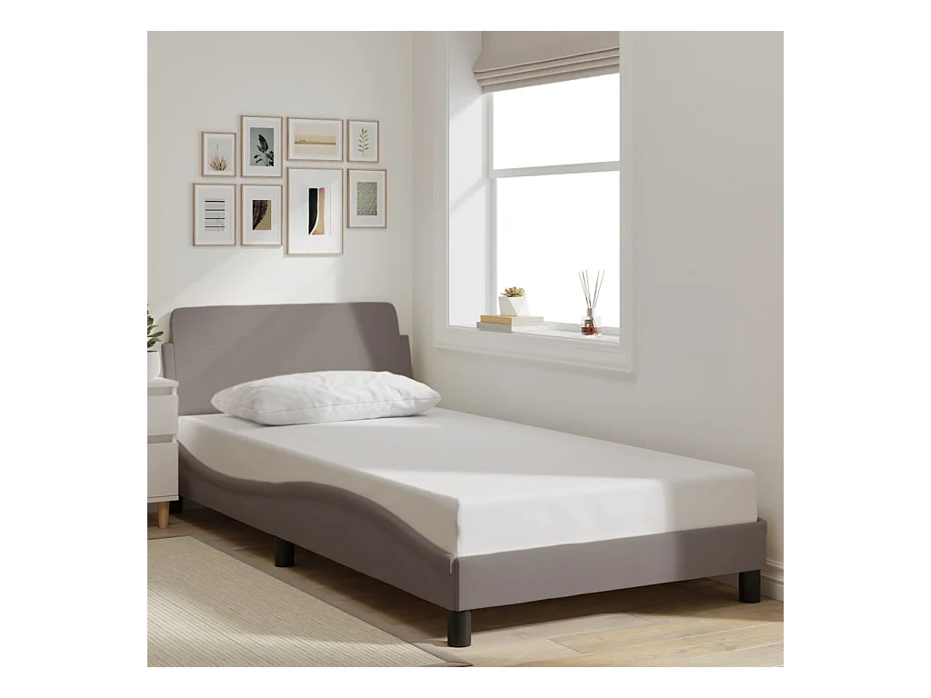 Cama individual- 100x200 cm con cabecero de tela gris taupe ES664178