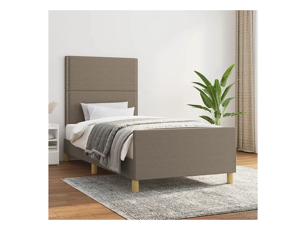 Cama individual- 100x200 cm con cabecero de tela gris taupe ES828290
