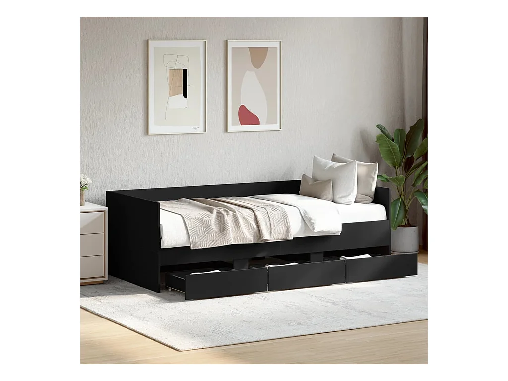 Cama individual - 75x190 cm con cajones madera de ingeniería negro ES790028