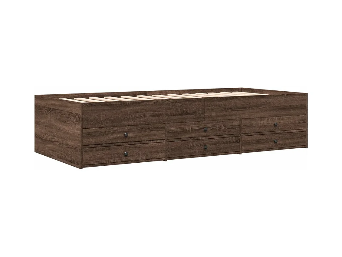 Cama individual - 75x190 cm con cajones madera ingeniería roble marrón ES876189