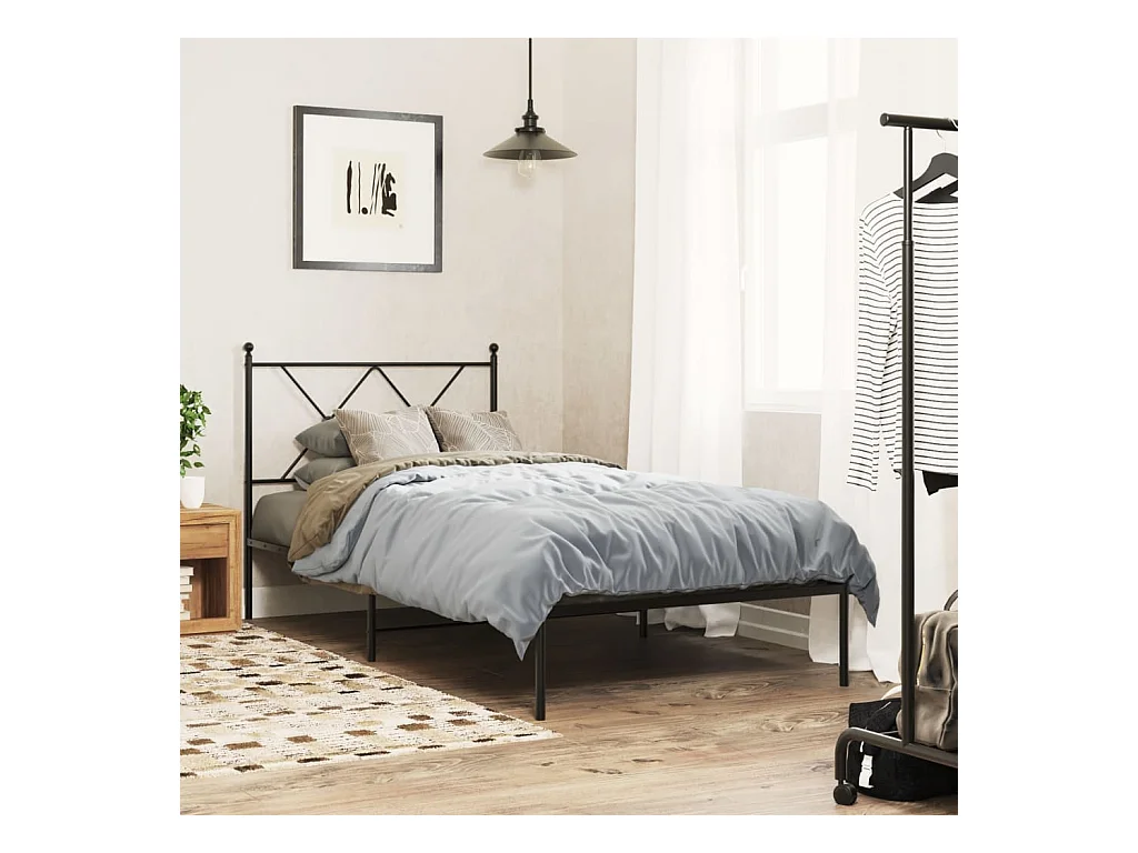 Cama individual- 90x190 cm con cabecero metal negro ES430617