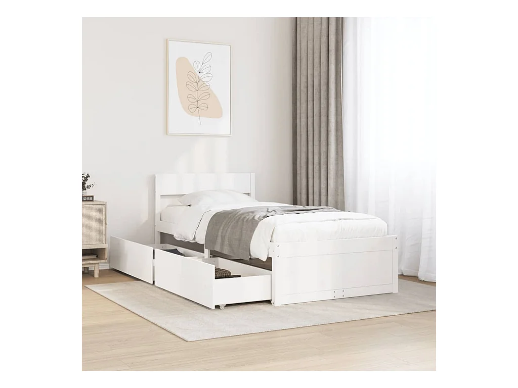 Cama individual- 90x190 cm sin colchón madera maciza blanca ES636613