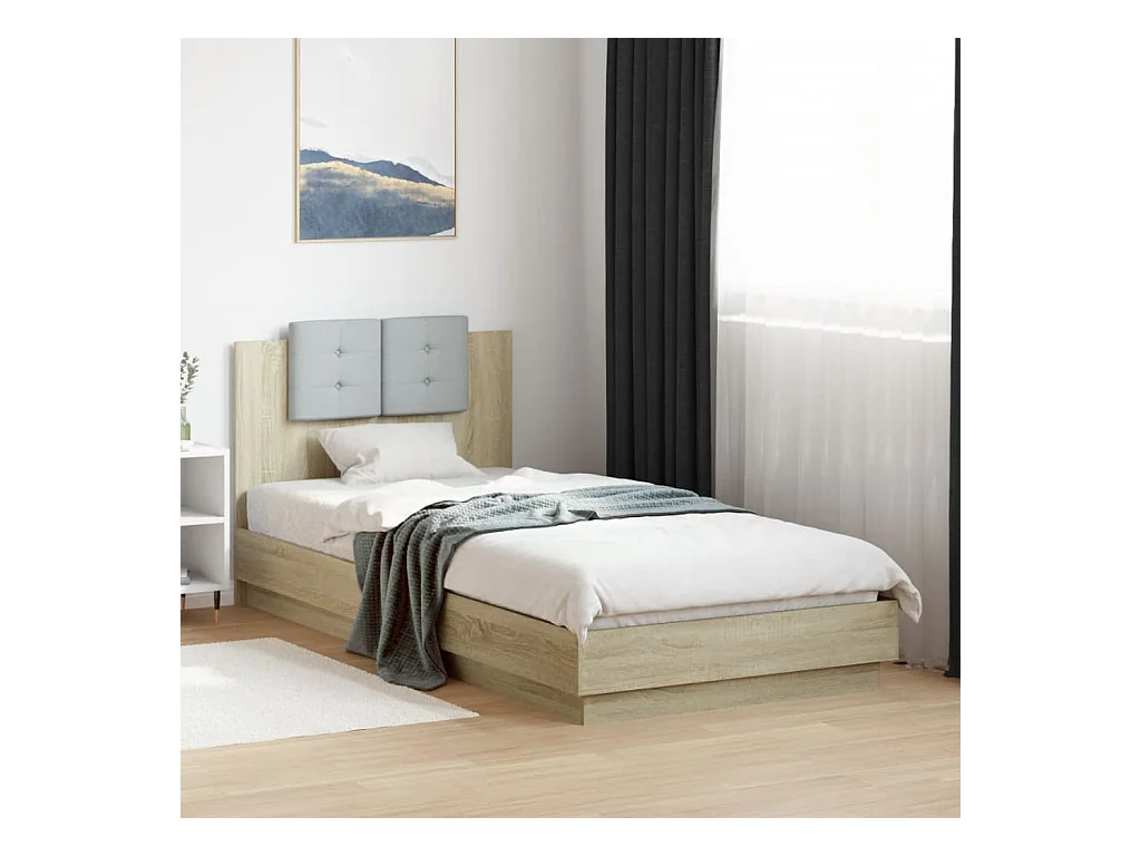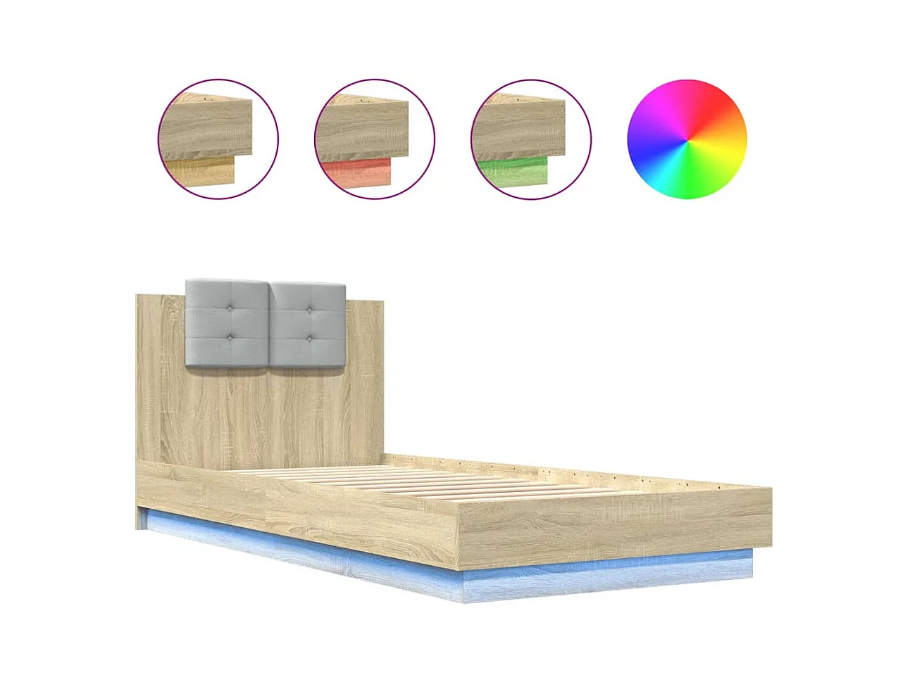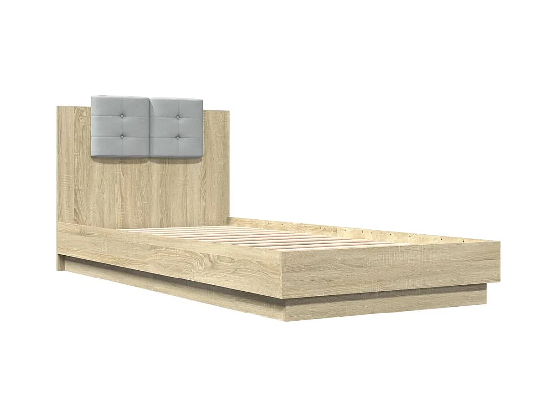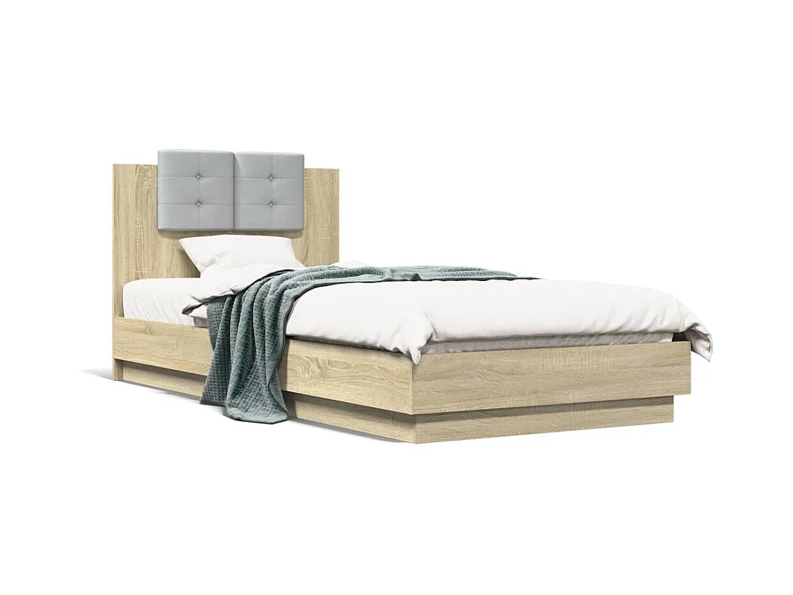 Cama individual- 90x200 cm cabecero luces LED roble Sonoma ES939610
