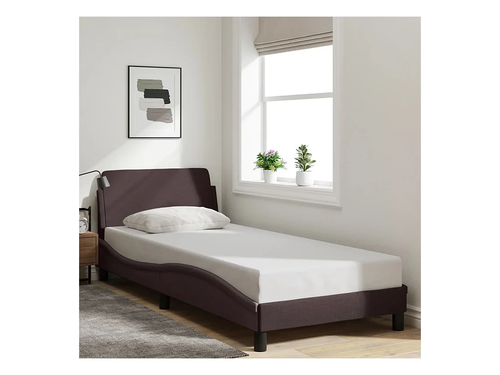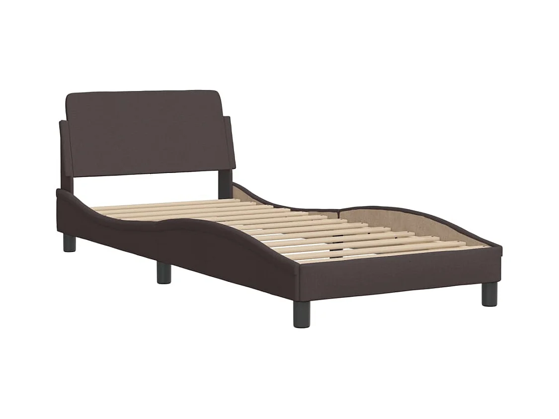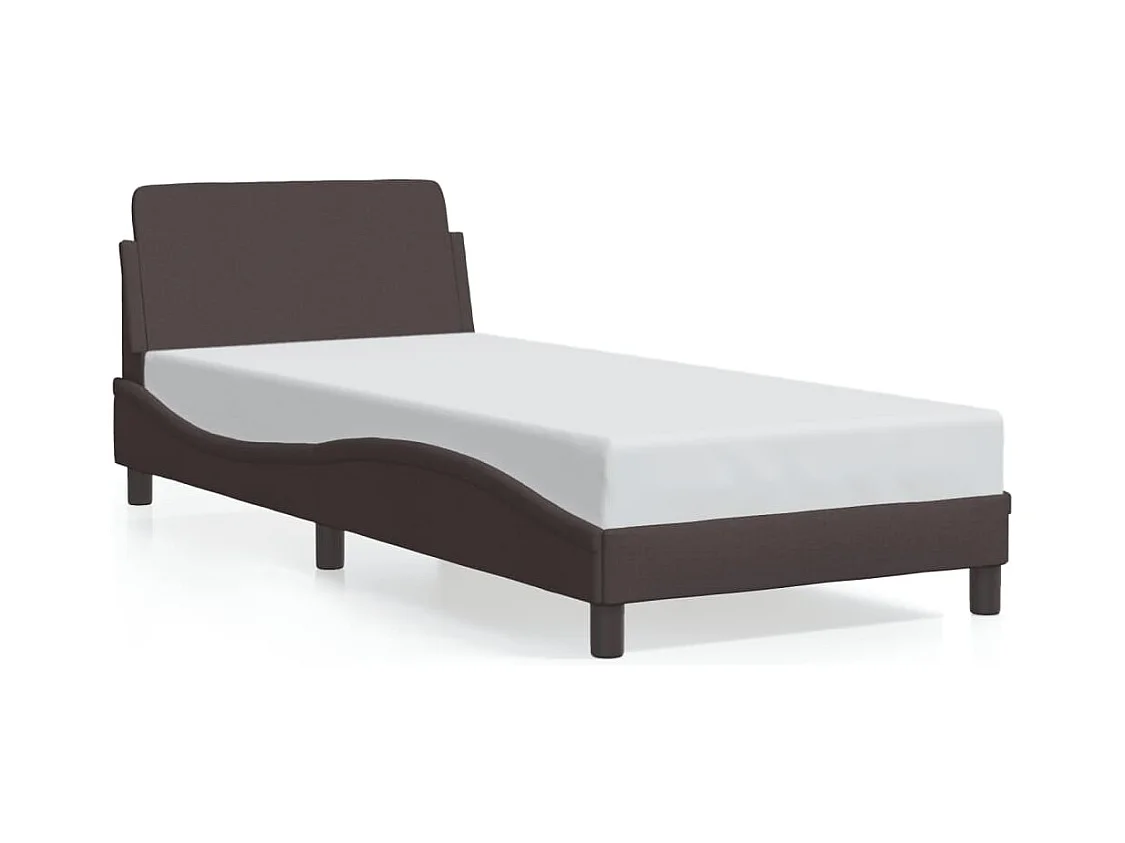 Cama individual- 90x200 cm con cabecero de tela marrón oscuro ES576409