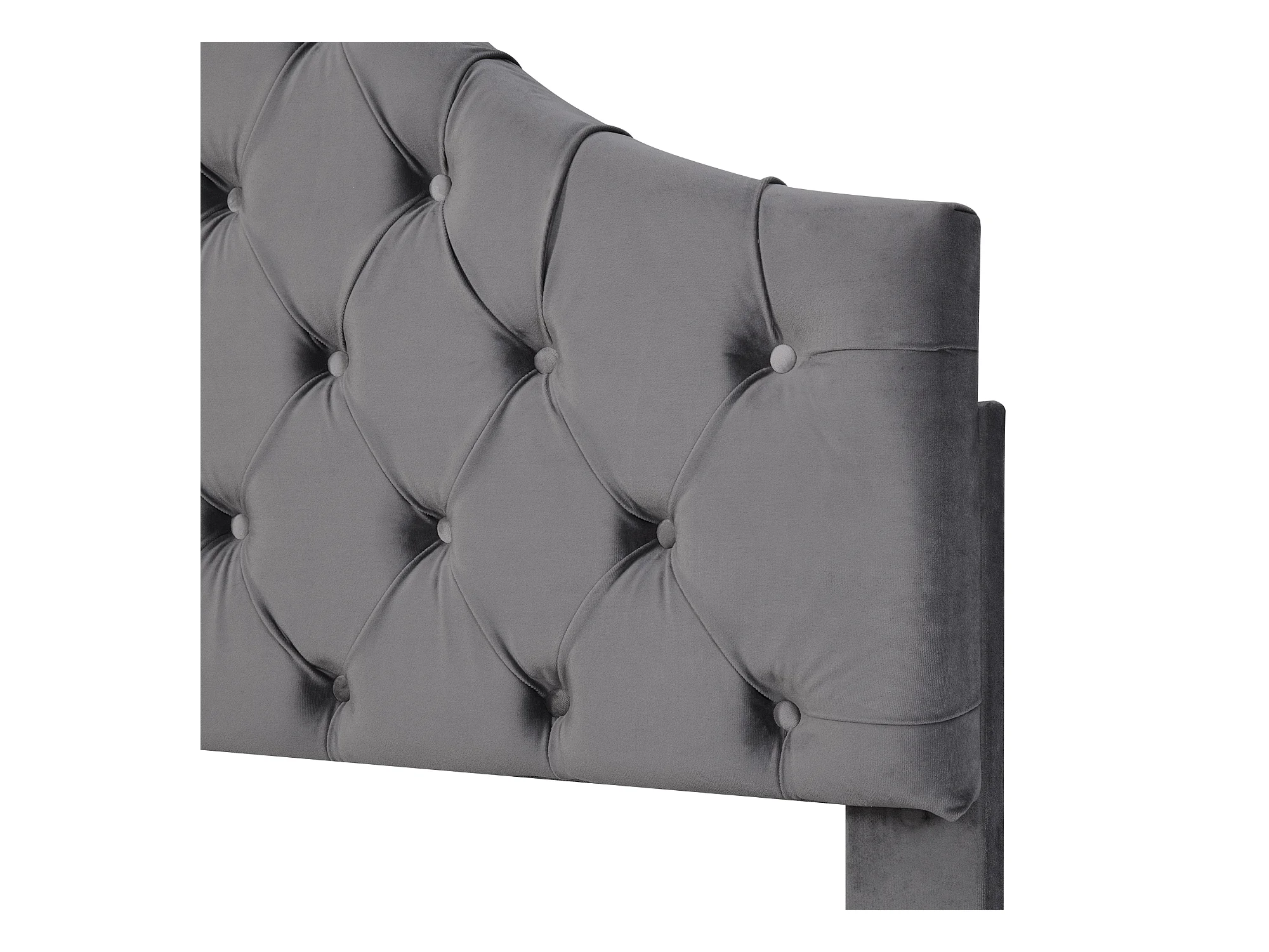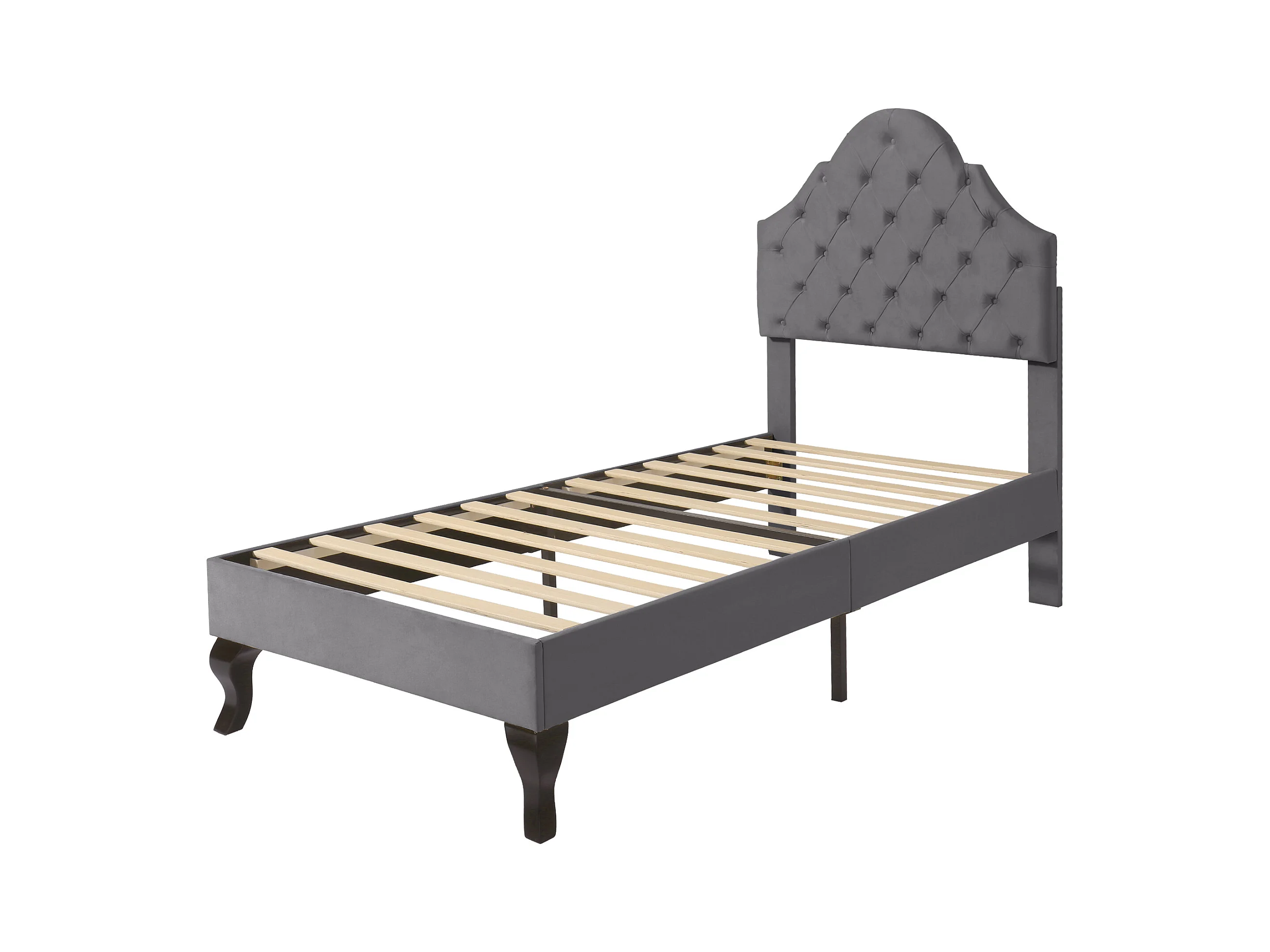 Cama individual 90x200 cm de terciopelo gris con cabecero ajustable – somier de láminas (sin colchón)