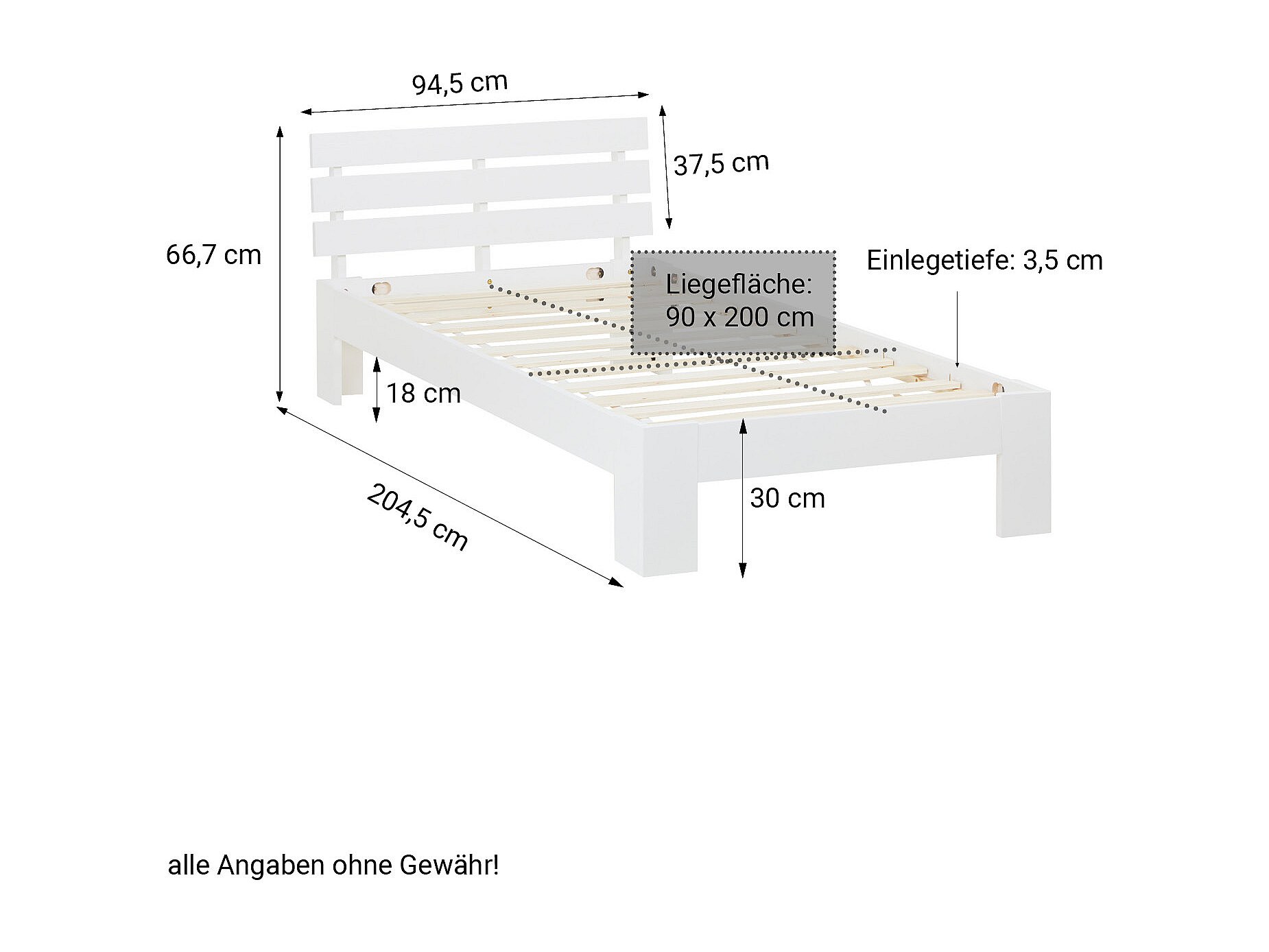 Cama individual 94,5x204,5x66,7 cm pino blanco