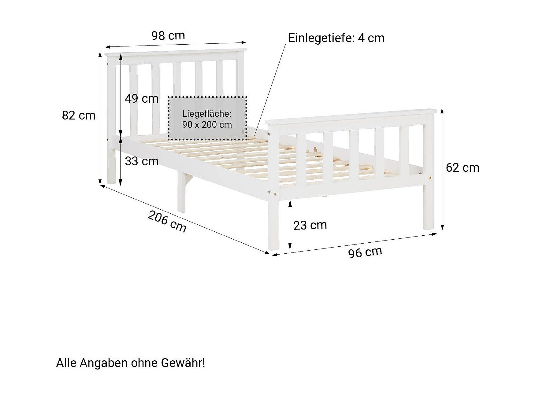 Cama individual 98x206x82 cm marco de madera maciza de pino blanco estilo shaker sofá cama