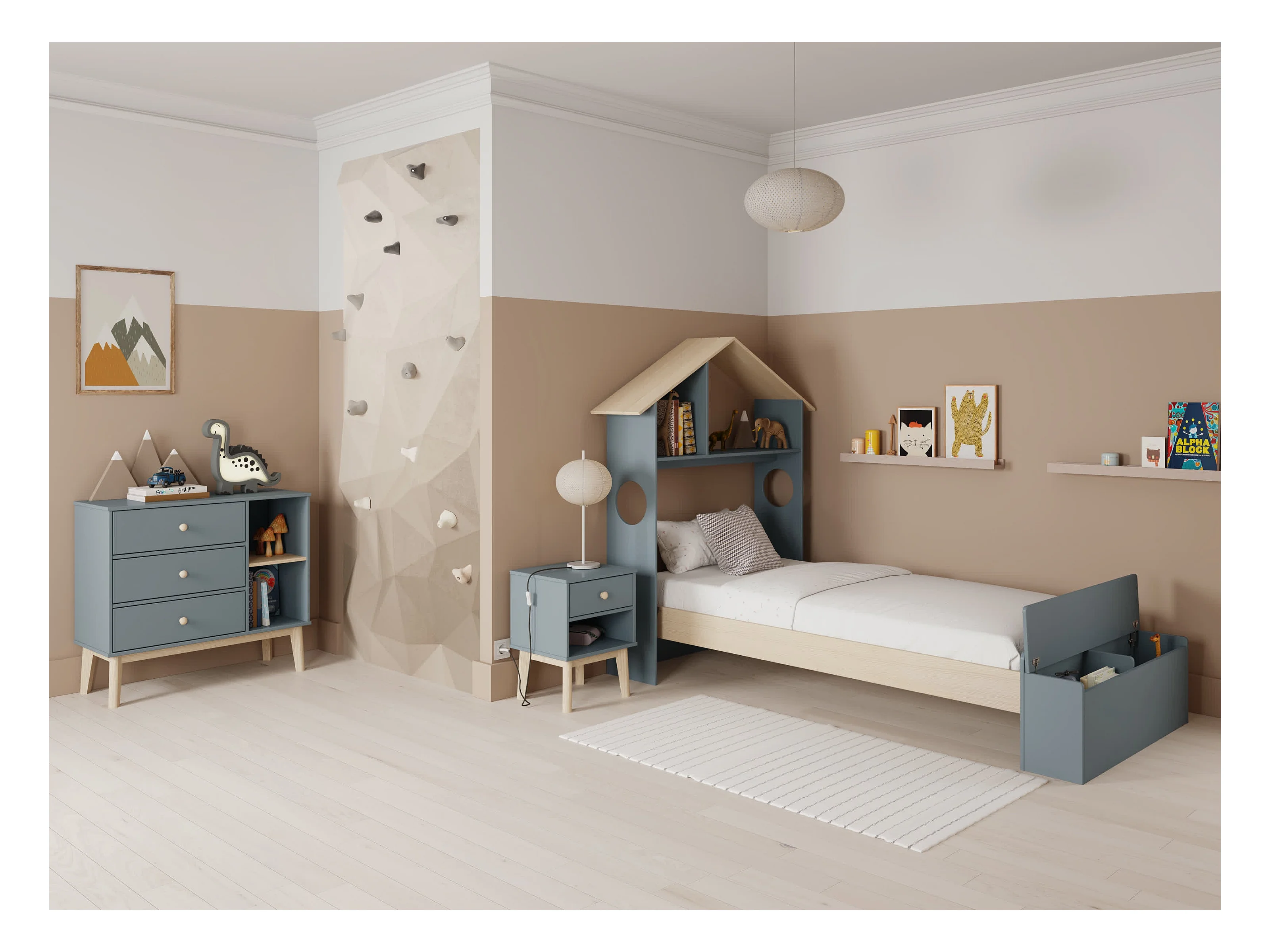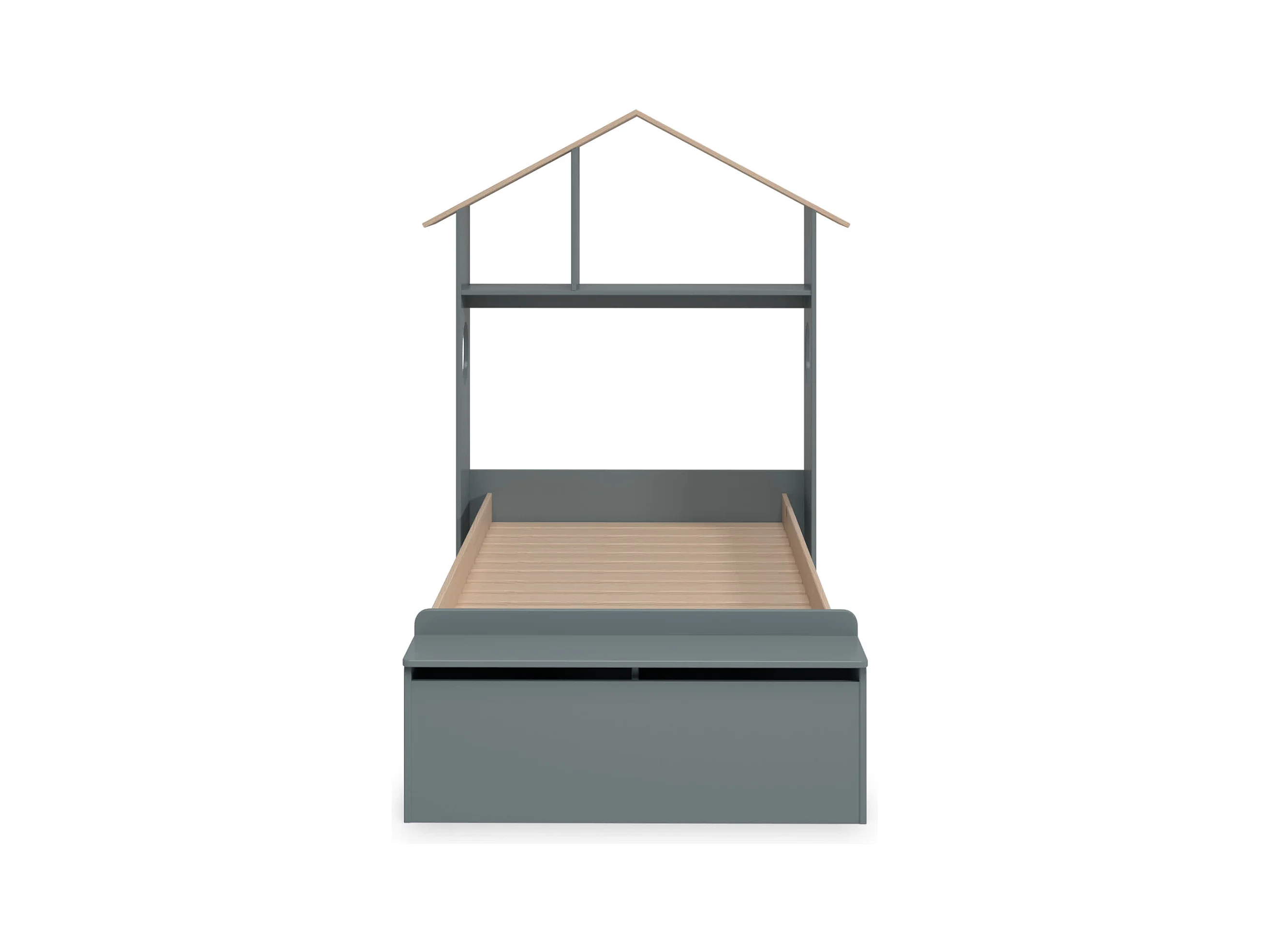 Cama contenedor doble elevada acolchada microfibra té verde Azelia 160x210
