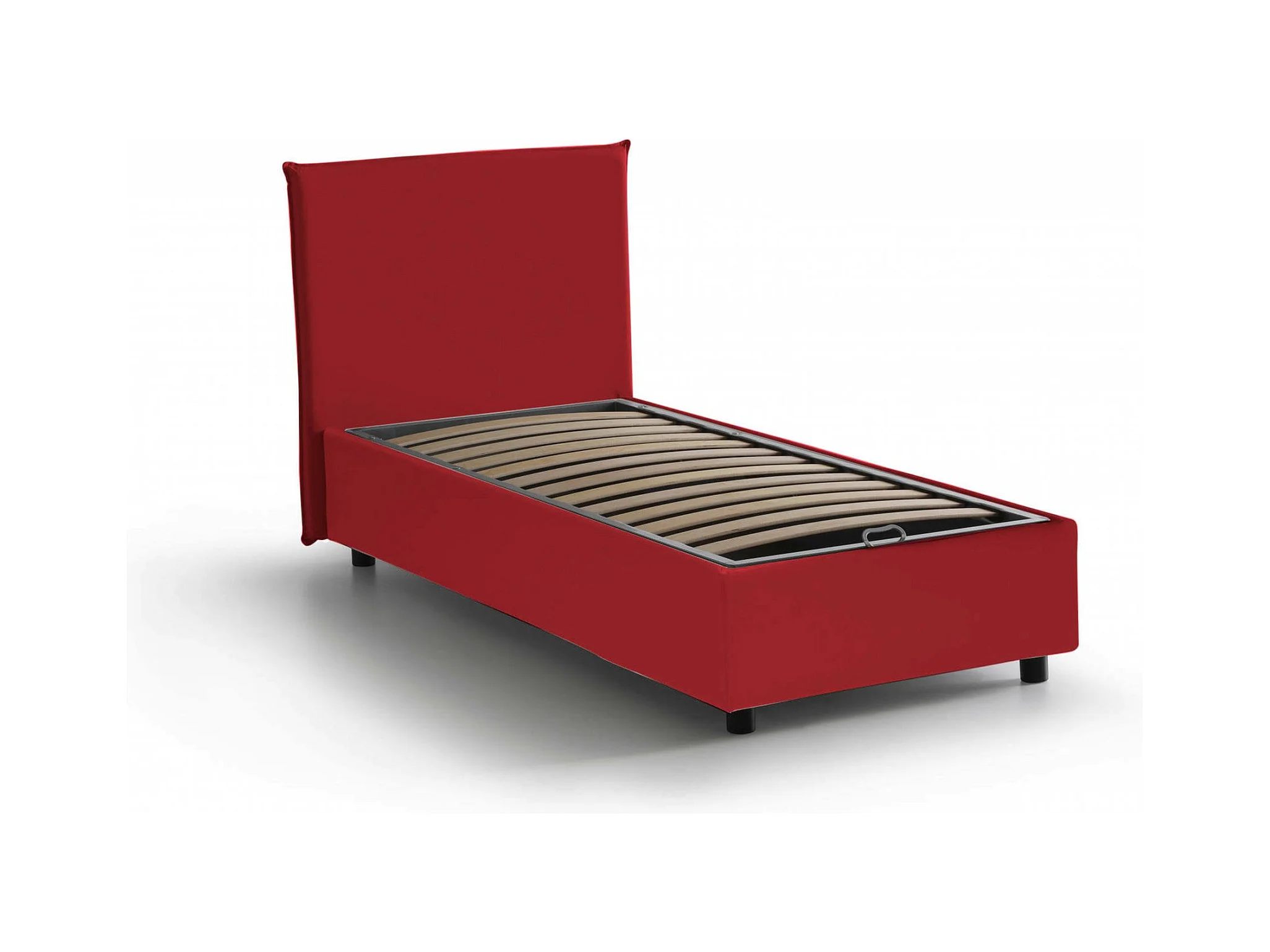 Cama individual Daugell, Cama contenedor con revestimiento de tela, 100% Made in Italy, Apertura lateral, con colchón Cm 80x190 incluido, Rojo