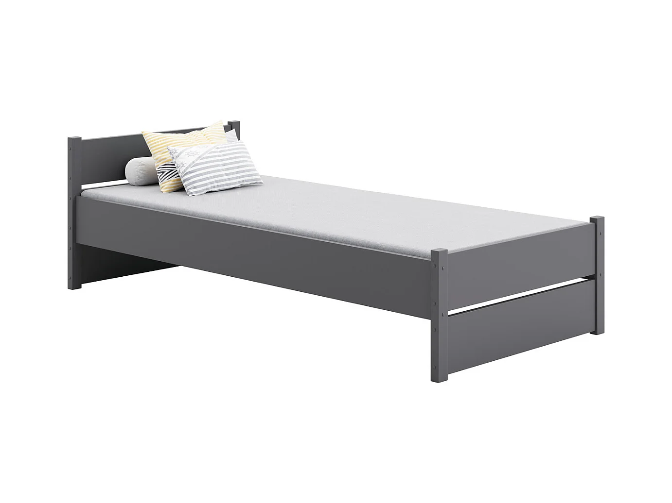 Cama Individual Gris 200x90 cm – Incluye Colchón de Espuma 8 cm con Funda Extraíble, Estructura Completa y Accesorios, Dimensiones 207x97x65 cm