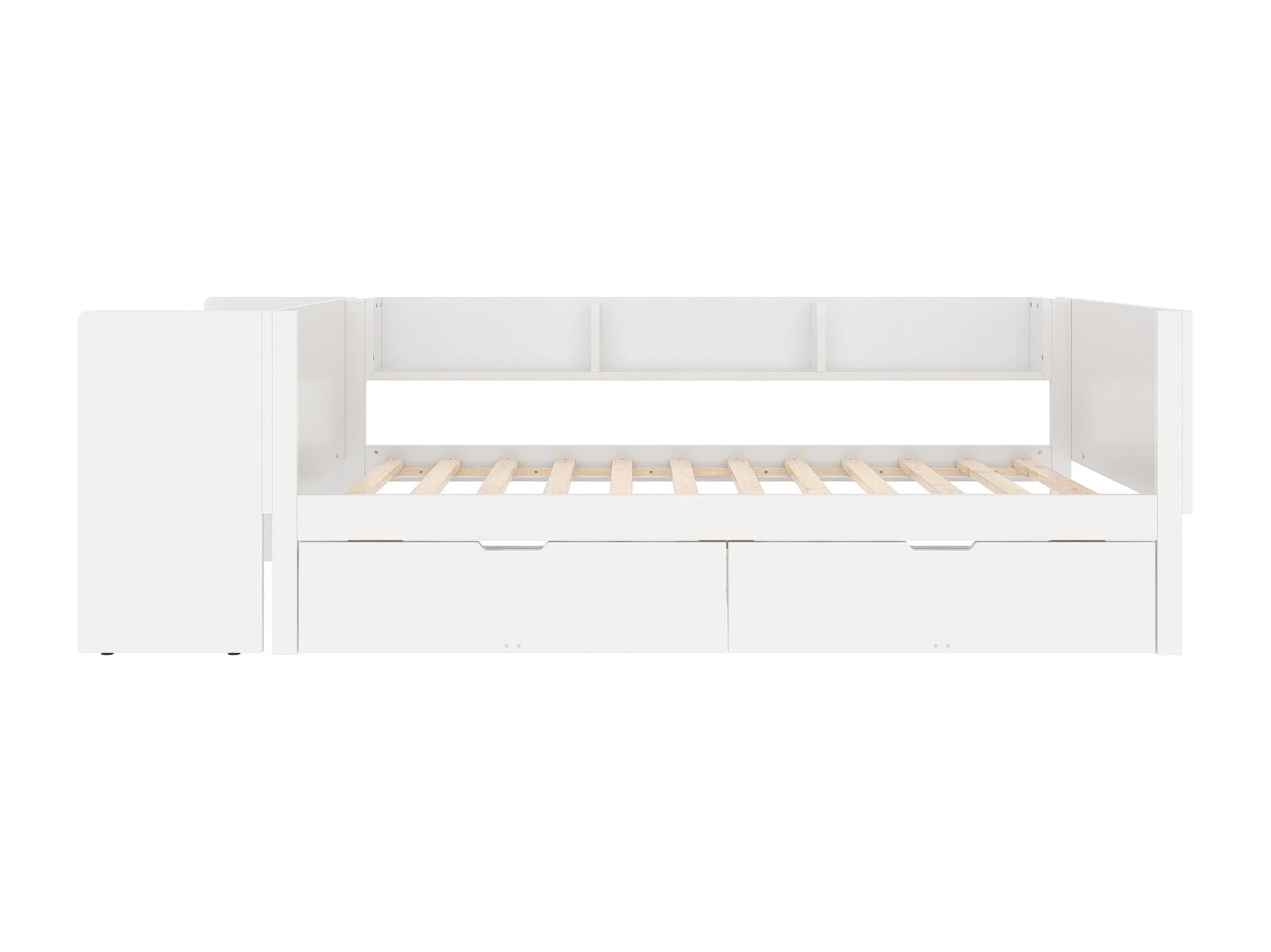 Cama individual de madera 90x200cm - con 2 cajones y estantes - Blanca (colchón no incluido)