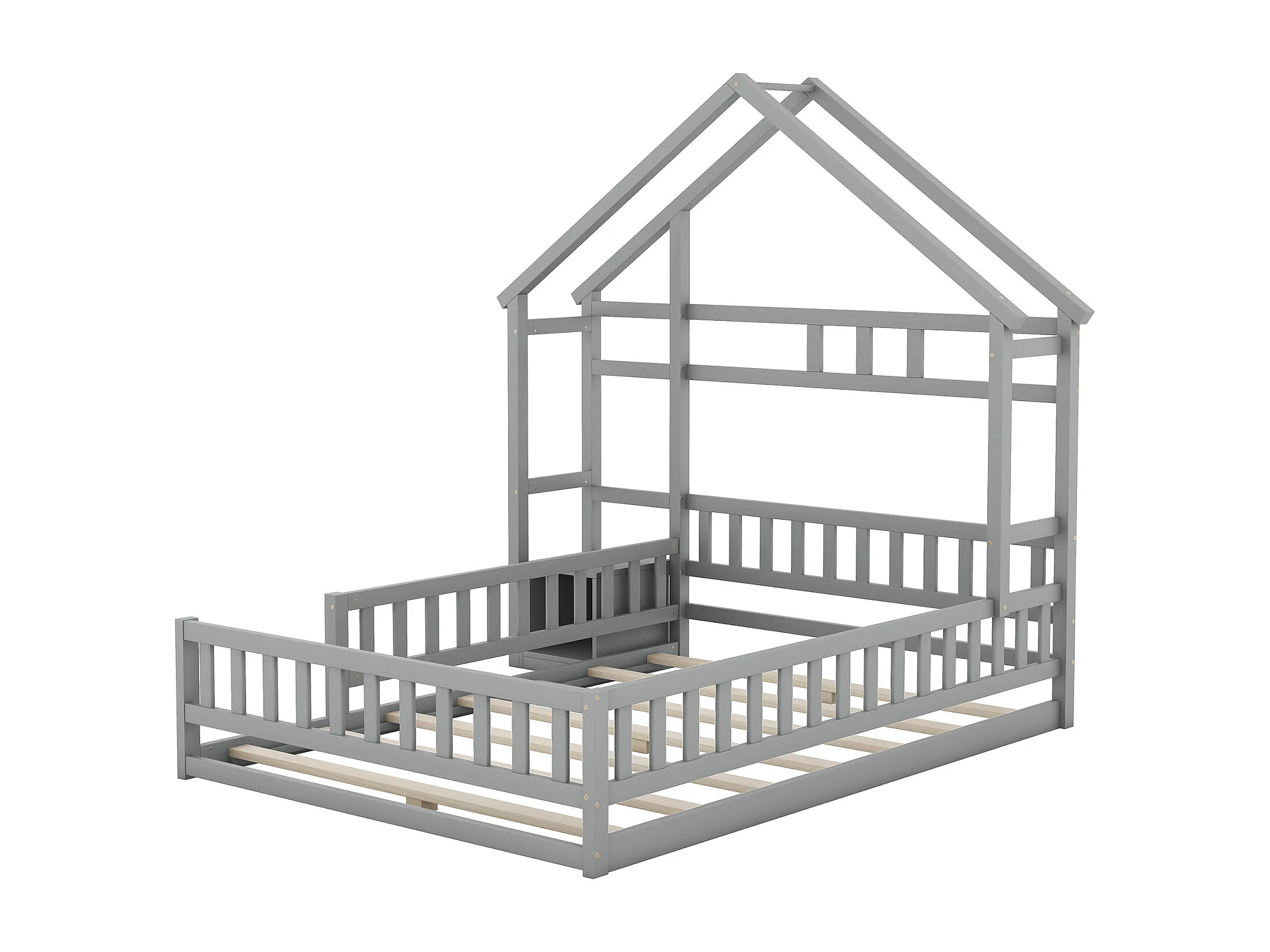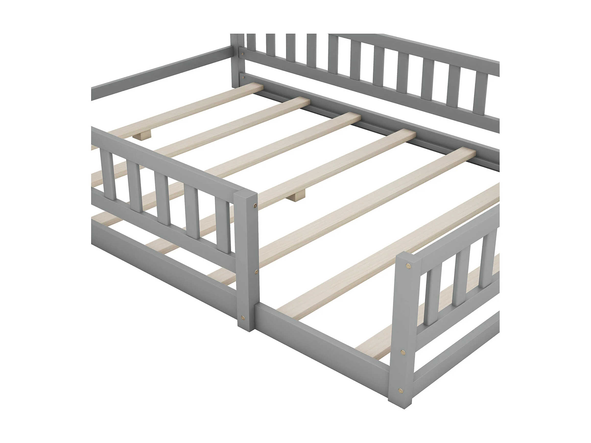 Lit cabane 140x200cm en bois massif - avec sommier à lattes - Gris (matelas non inclus)