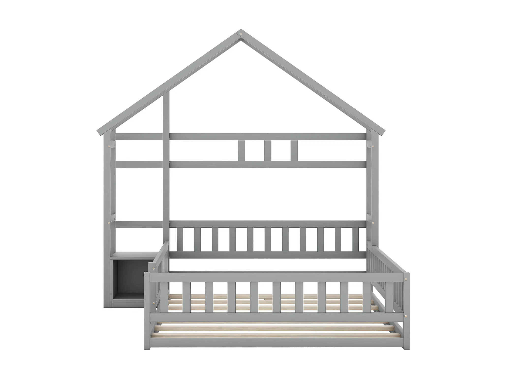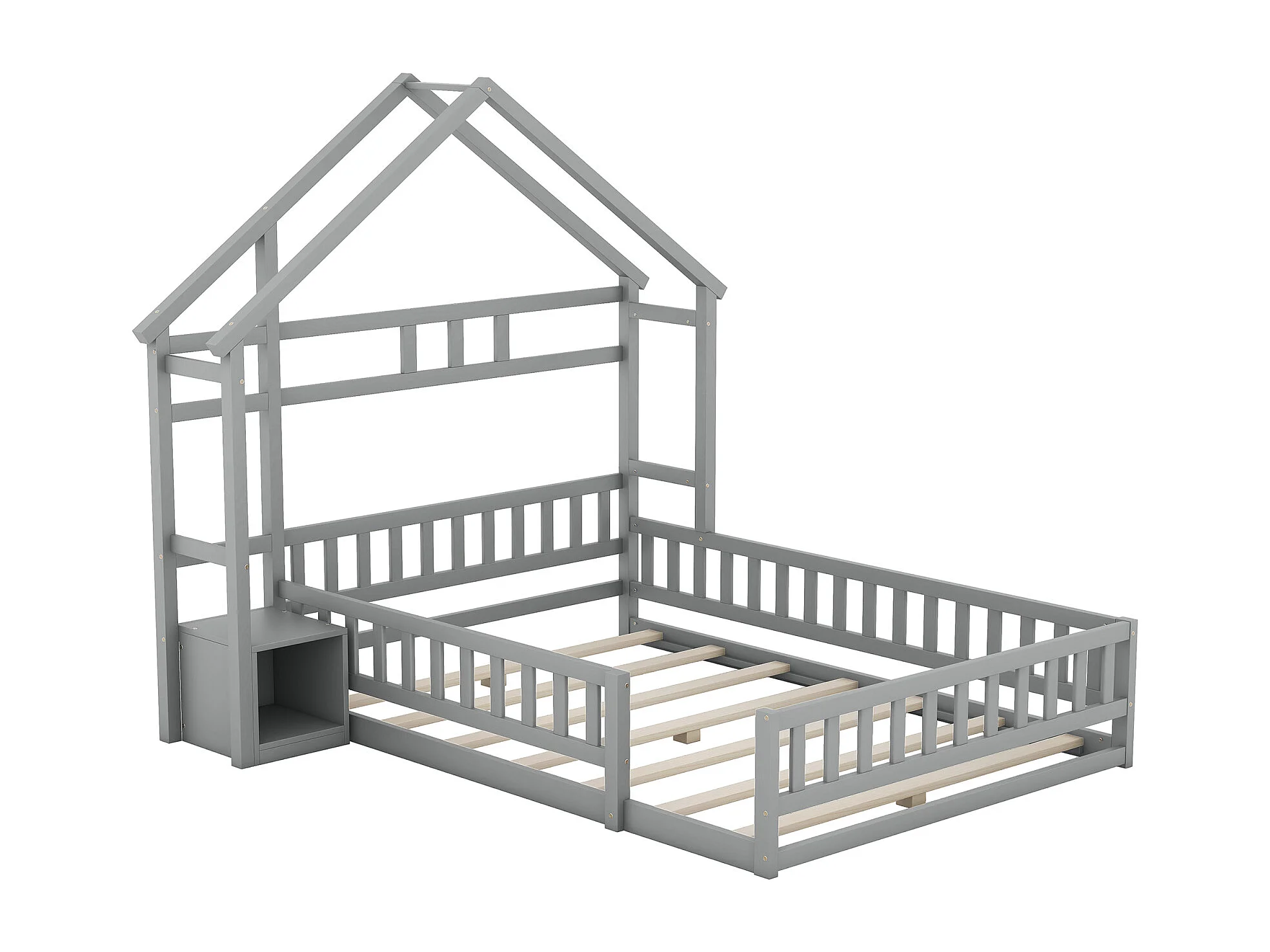 Cama individual infantil de 140x200 cm en gris con barandillas y mesitas de noche – Diseño lúdico y seguro para la habitación de un niño.
