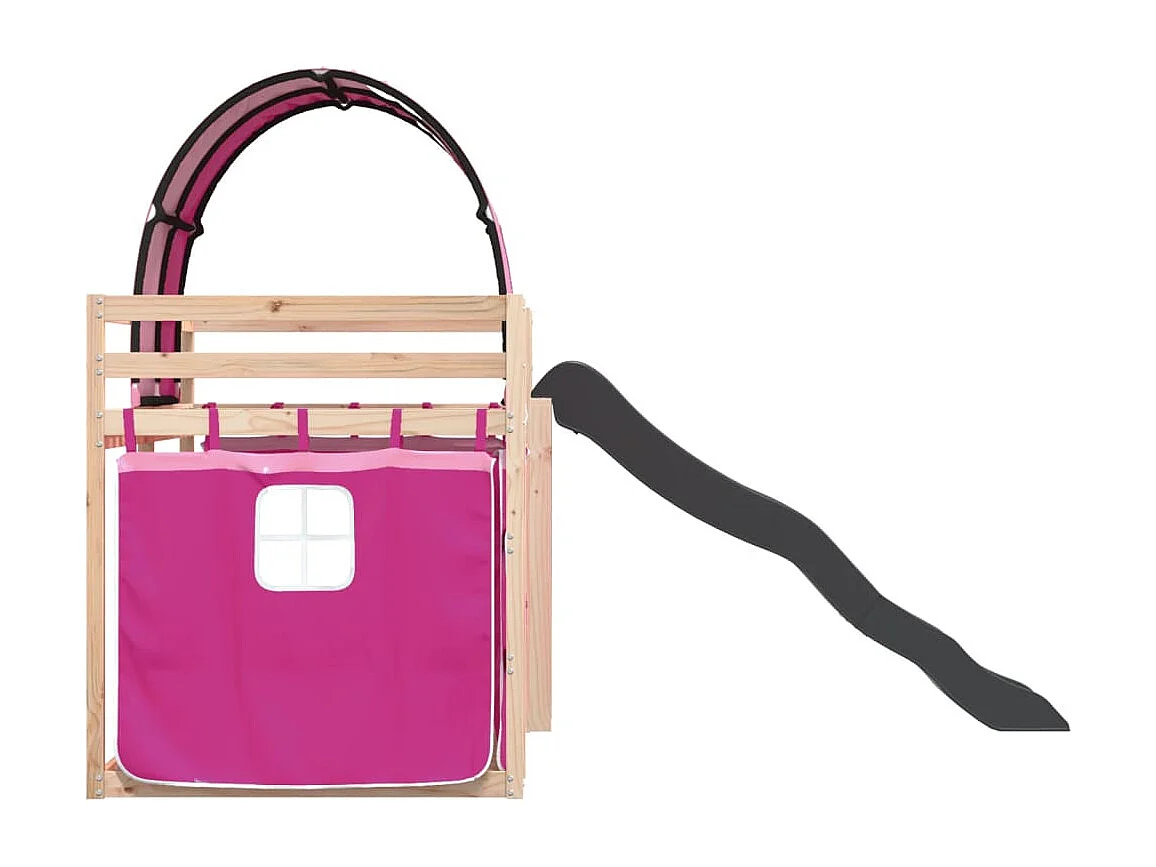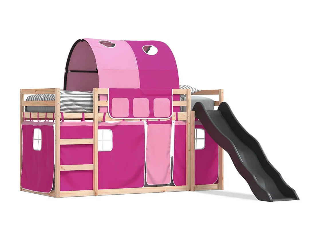 Cama individual | Litera con tobogán y cortinas rosa 80x200 cm SHL40965