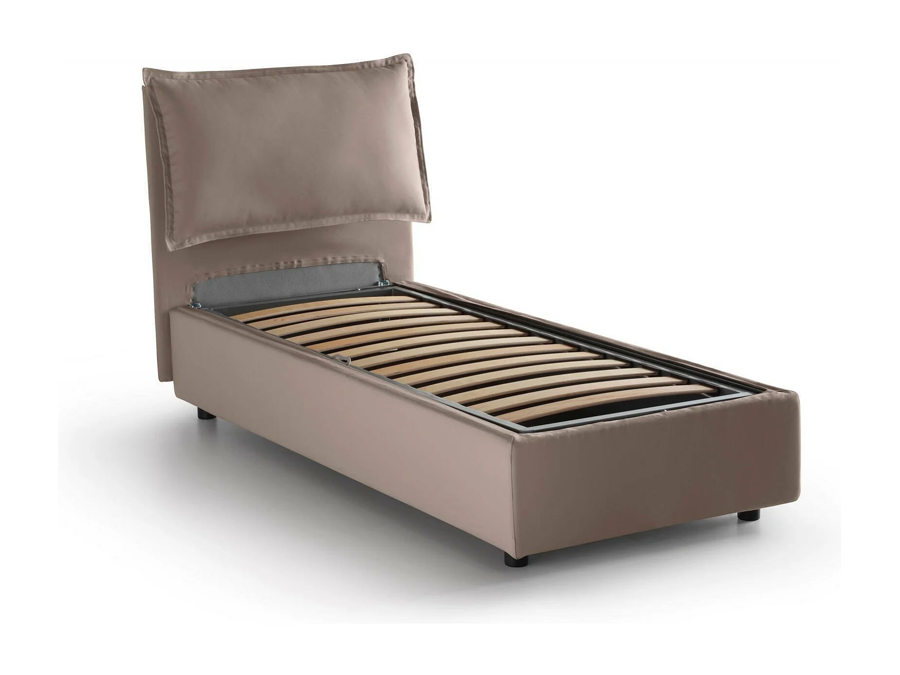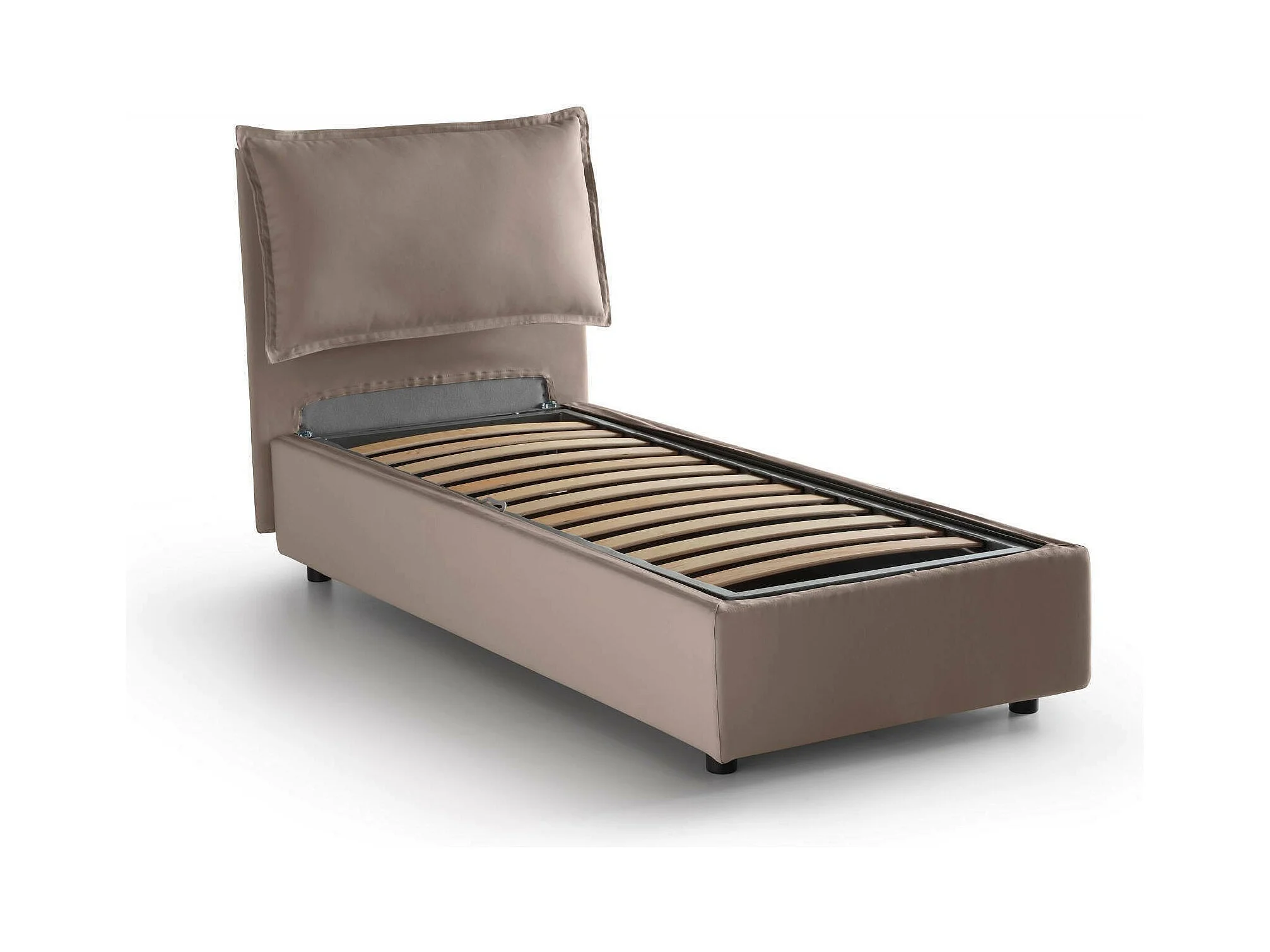 Cama individual Penélope, Cama contenedor con revestimiento de tela, 100% Made in Italy, Apertura frontal, con colchón 90x190 cm incluido, Taupe