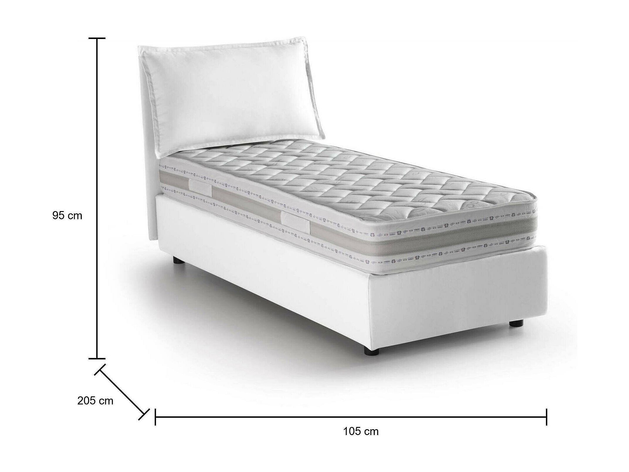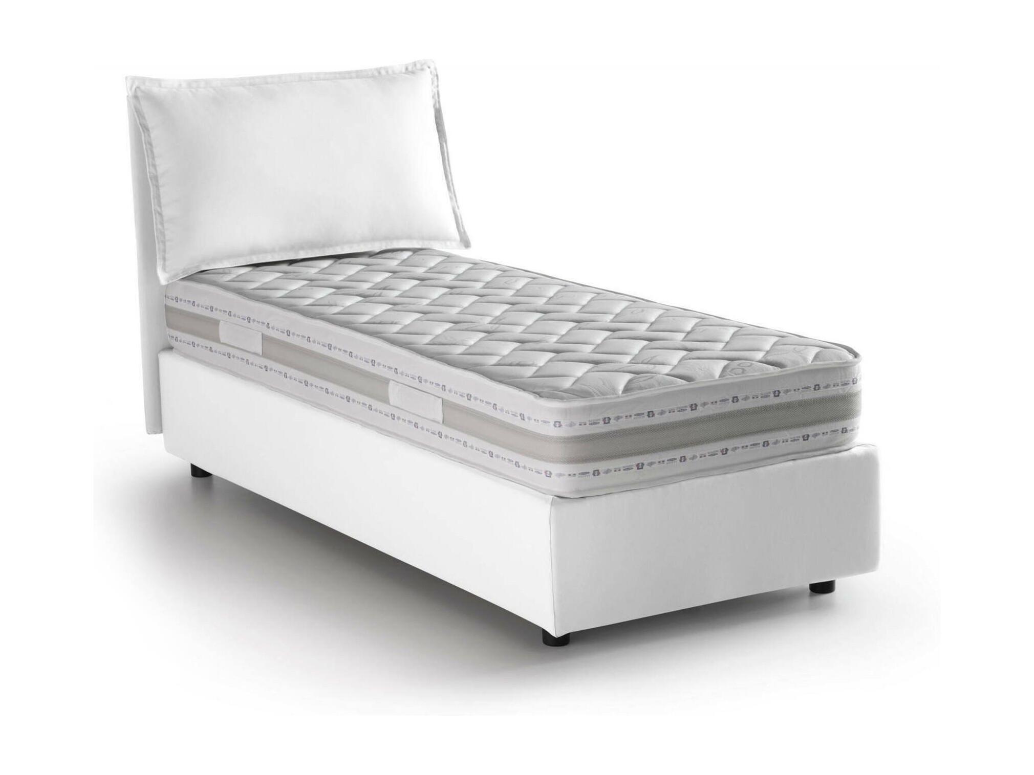 CAMA INDIVIDUAL - Cama contenedor con revestimiento de tela, 100% Made in Italy, Apertura frontal, con colchón de 90x190 cm incluido, Blanco. ESTRUCTURA - La estructura de la cama es de fibra de madera elevada del suelo con pies de ABS y está revestida con tejido de poliéster desenfundable y lavable a máquina a 30° - El cabecero lineal a juego de tejido con costuras vistas es sólido y resistente - Se incluye el somier de láminas de madera contrachapada en la estructura - Mecanismo de apertura de hierro - La incorporación de una práctica caja que ahorra espacio permite transformar la cama en un espacioso arcón para sábanas, almohadas y edredones. MADE IN ITALY - El artículo se produce en Italia, con el uso de los mejores materiales y la más alta calidad y atención al detalle - El cuidado de los procesos de producción es sinónimo de fiabilidad, resistencia y refinamiento - Certificación Made in Italy es una garantía de pleno cumplimiento de la normativa de la Unión Europea. COLCHÃ"N INCLUIDO - Colchón ortopédico desenfundable, anatómico y climatizado con doble soporte de 90x190, altura 21 cm - Estructura de poliuretano expandido macizo h 17 cm, densidad 30EP revestido con Memory Foam viscoelástico h 2 cm, densidad 55EP diamante- cortado en la parte superior - Revestimiento de tejido elástico de 130 g, desenfundable y lavable a máquina a 60° - Acolchado 100% en fibra politecno, hipoalergénico y antiácaros por ambas caras - Dotado de banda transpirable tri-space con cremallera y asa de tejido - Artículo certificado OekoText. MEDIDAS Y APERTURA - Dimensiones de la cama: Largo 205 x Ancho 105 x Alto 95 cm (altura del somier desde el suelo: 32cm) - Apertura del contenedor: frontal - Profundidad del contenedor: 20 cm aproximadamente - Altura de los pies: 10 cm aproximadamente - Fondo de la cama en melamina de 1 cm de espesor - Dimensiones del colchón: 90x190 cm