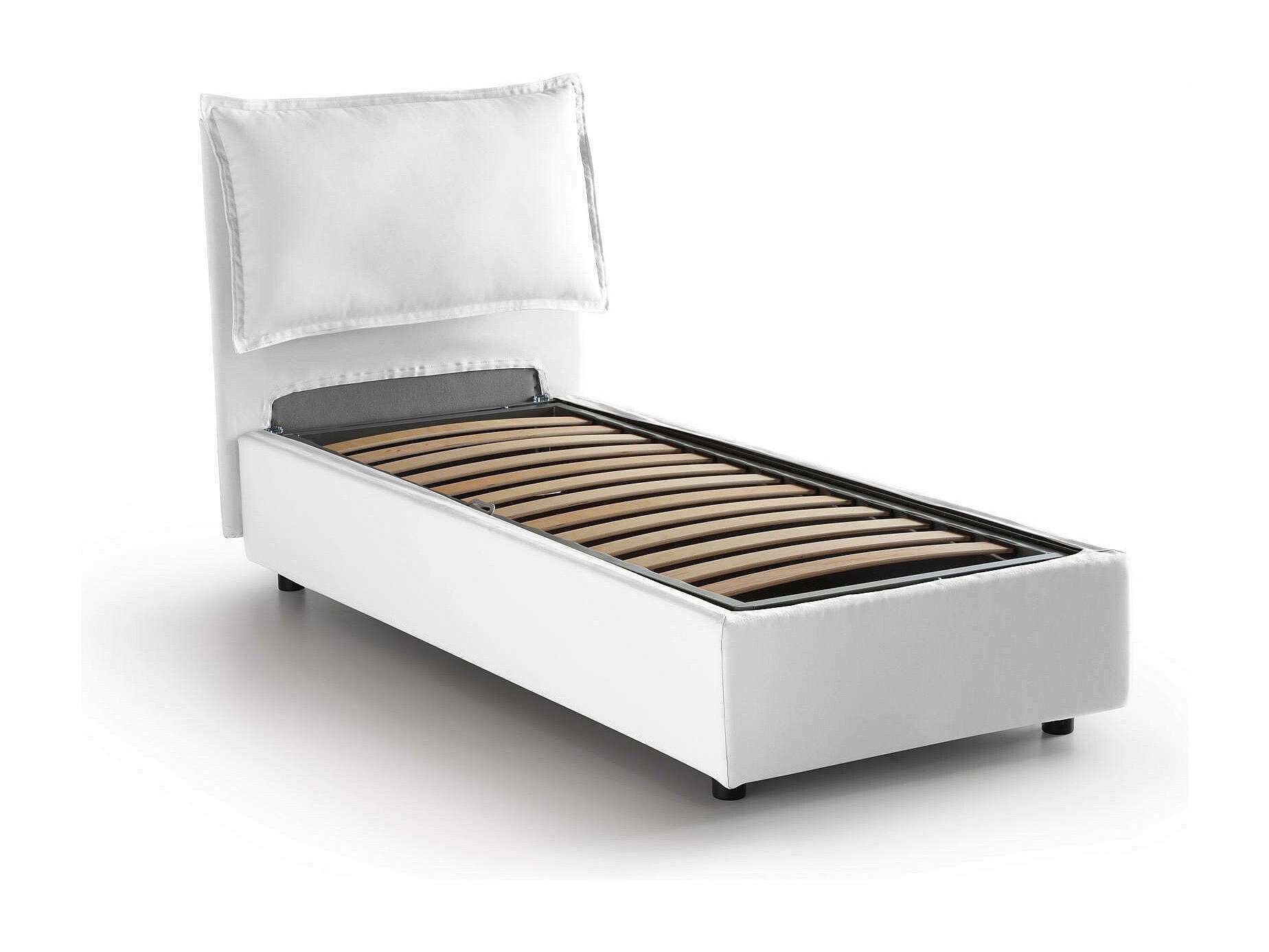 Cama individual Penélope, Cama contenedor con revestimiento de tela, 100% Made in Italy, Apertura frontal, con colchón de 90x190 cm incluido, Blanco