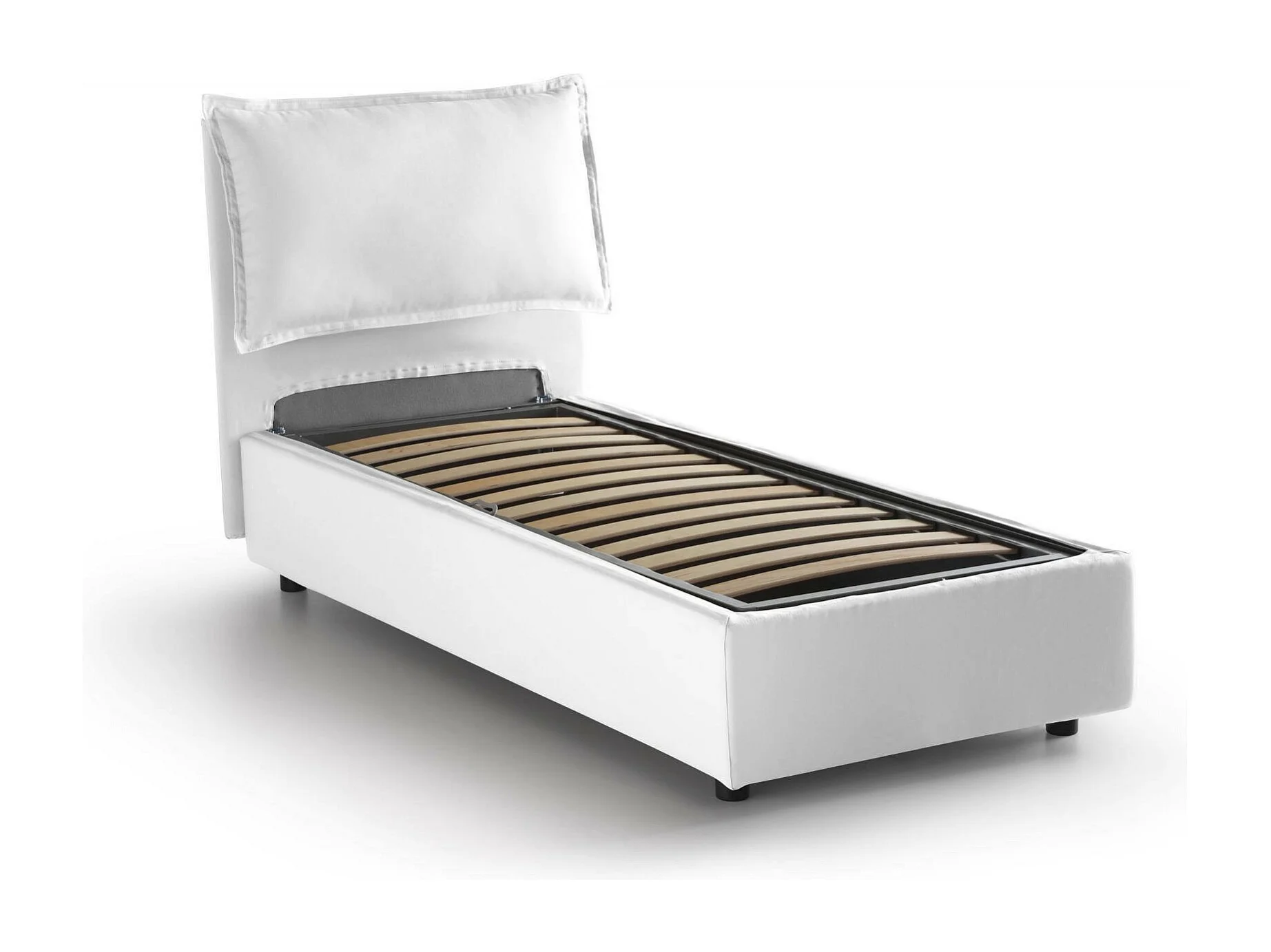 Cama individual Vanessa, Cama contenedor con revestimiento de tela, 100% Made in Italy, Apertura frontal, Apta para colchón de 80x190 cm, Blanco