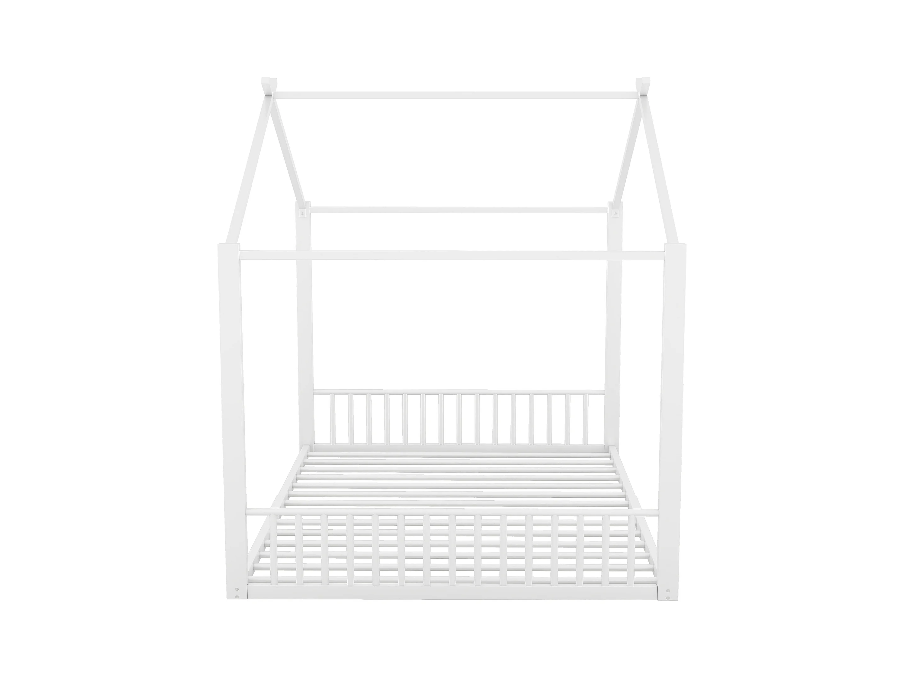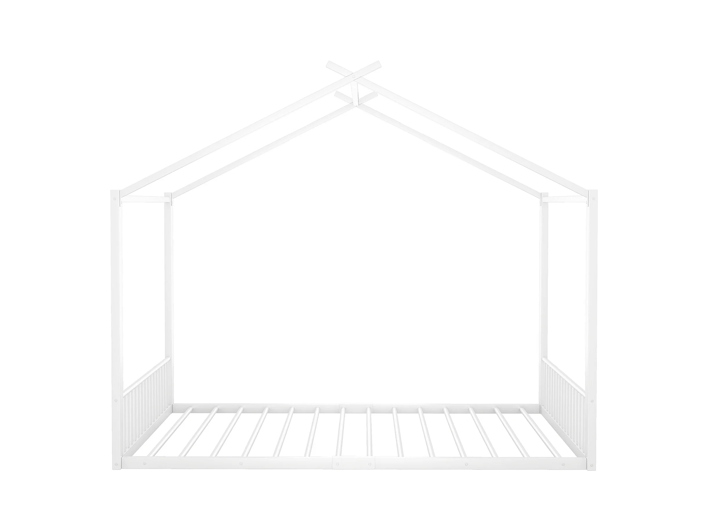 Cama infantil 140x200 cm metal MDF forma casa dormitorio niño niña blanco